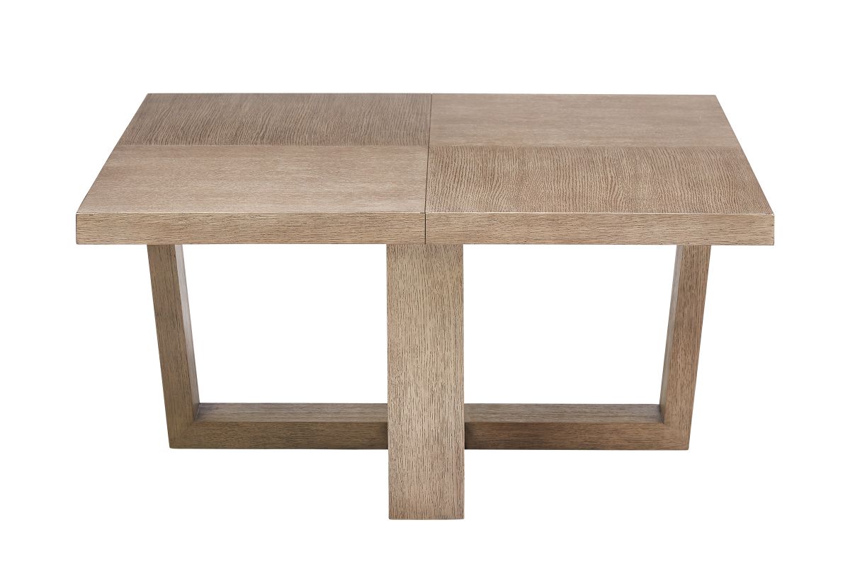 Simple, modern and elegant is what comes to mind when we look at the Collingwood Cocktail Table. Built with oak solids and veneers, this table has a soft, timber grey finish that will stand the test of time and create a beautiful accent in your home. The table top features four solid wood pieces that have the grain facing different directions. Four solid legs come together on the base to create a secure design.