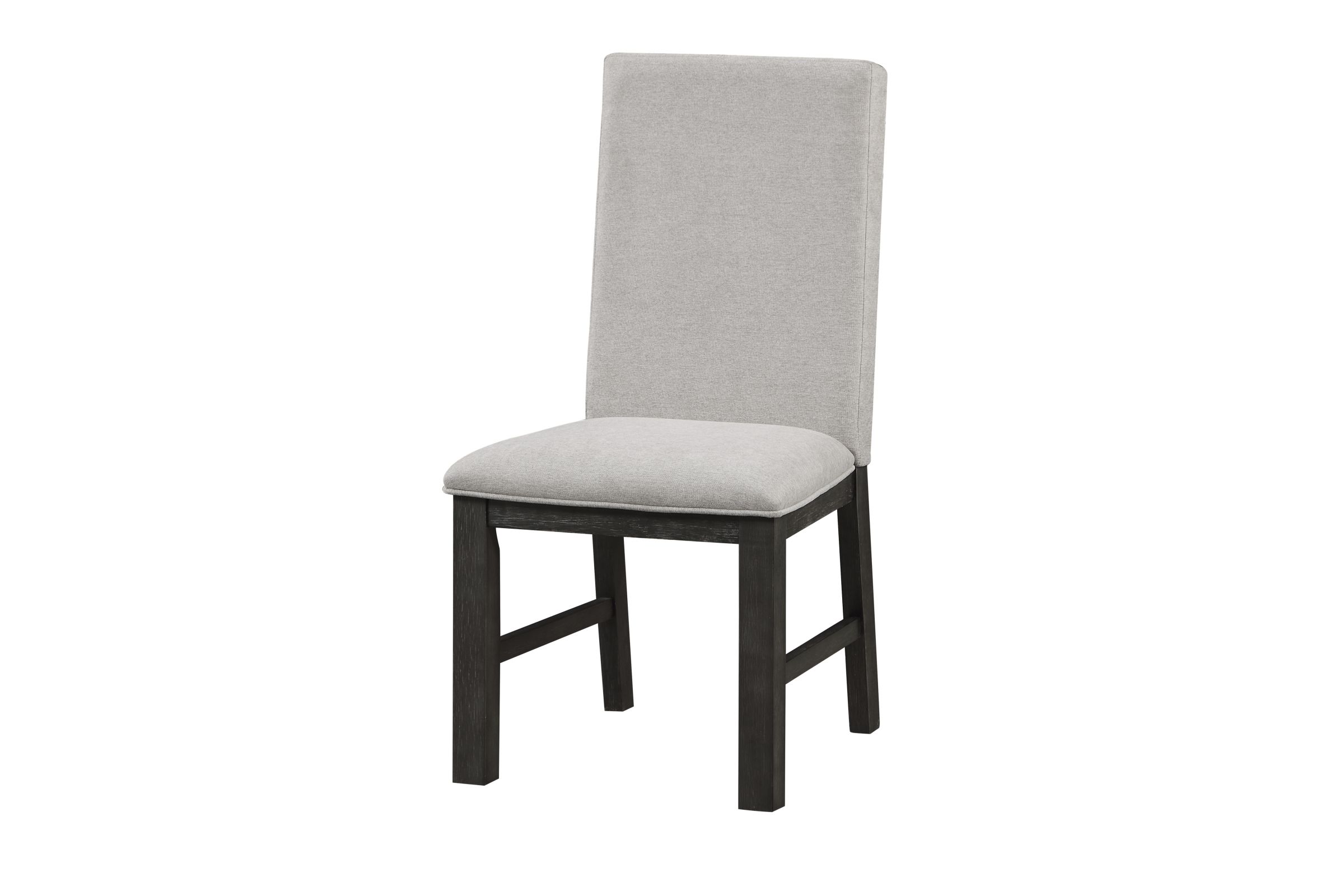 The transitional framing of the Collins Collection will provide a perfect mealtime platform for your casual dining room. The Charcoal gray finish of the collection’s oak veneer creates a versatile decorative accent to your space. Gray fabric upholstery covers the seats and backs of the wood leg-supported side chairs.