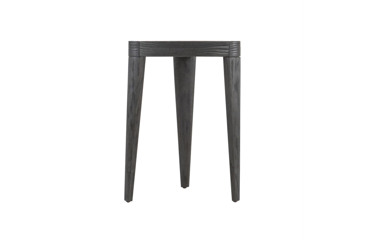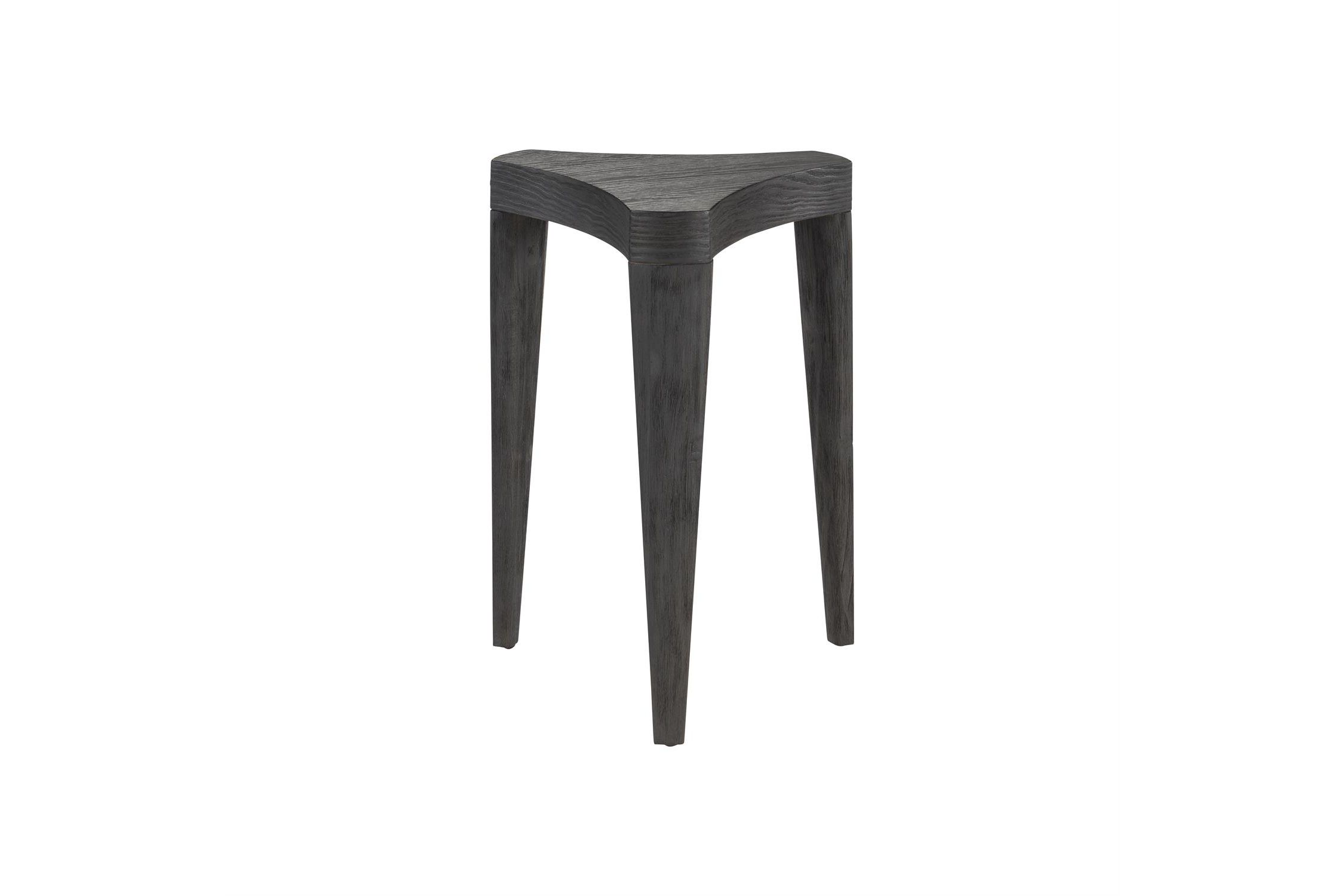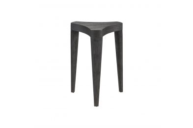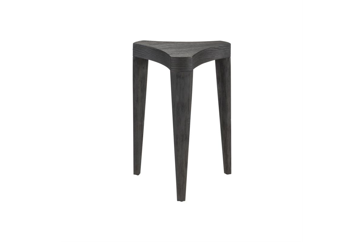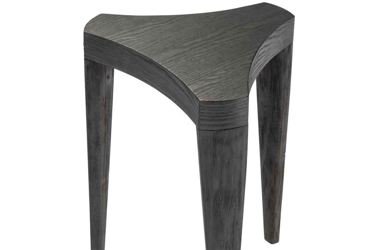 The perfect perch next to a sofa or side chair, the Katana accent table is crafted of solid wood with a beautifully grained veneer. The modern trefoil shape is balanced on three legs for a streamlined look. The blackened pine finish gives it a chic and sleek look.