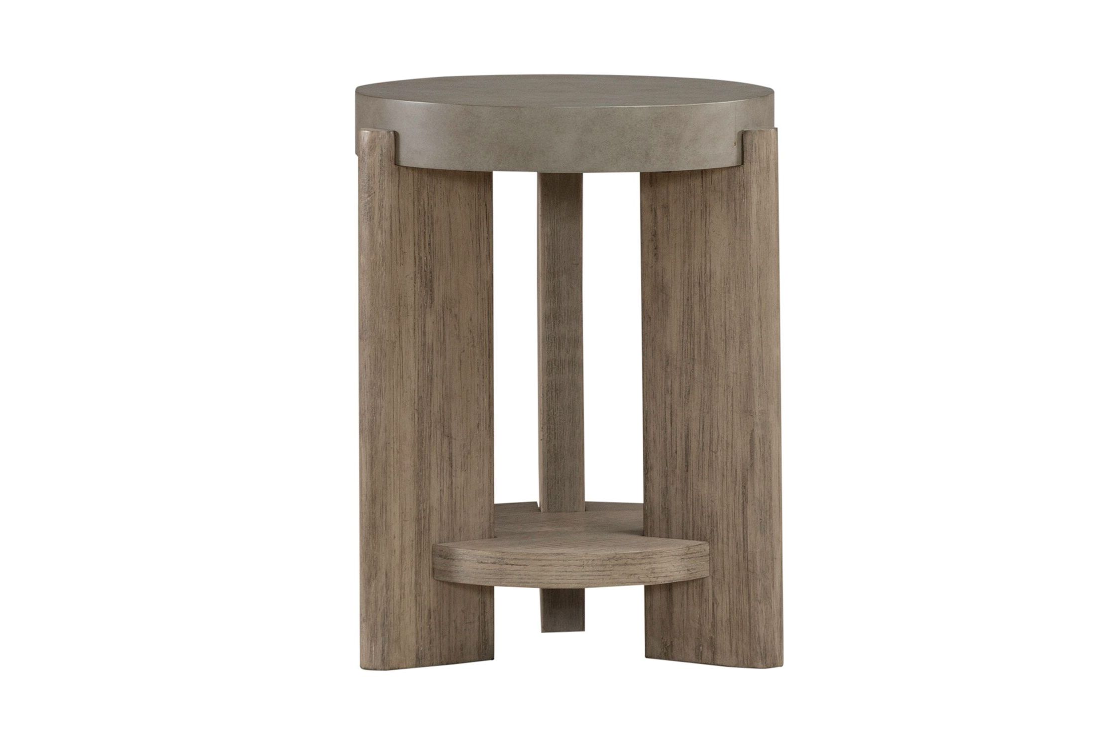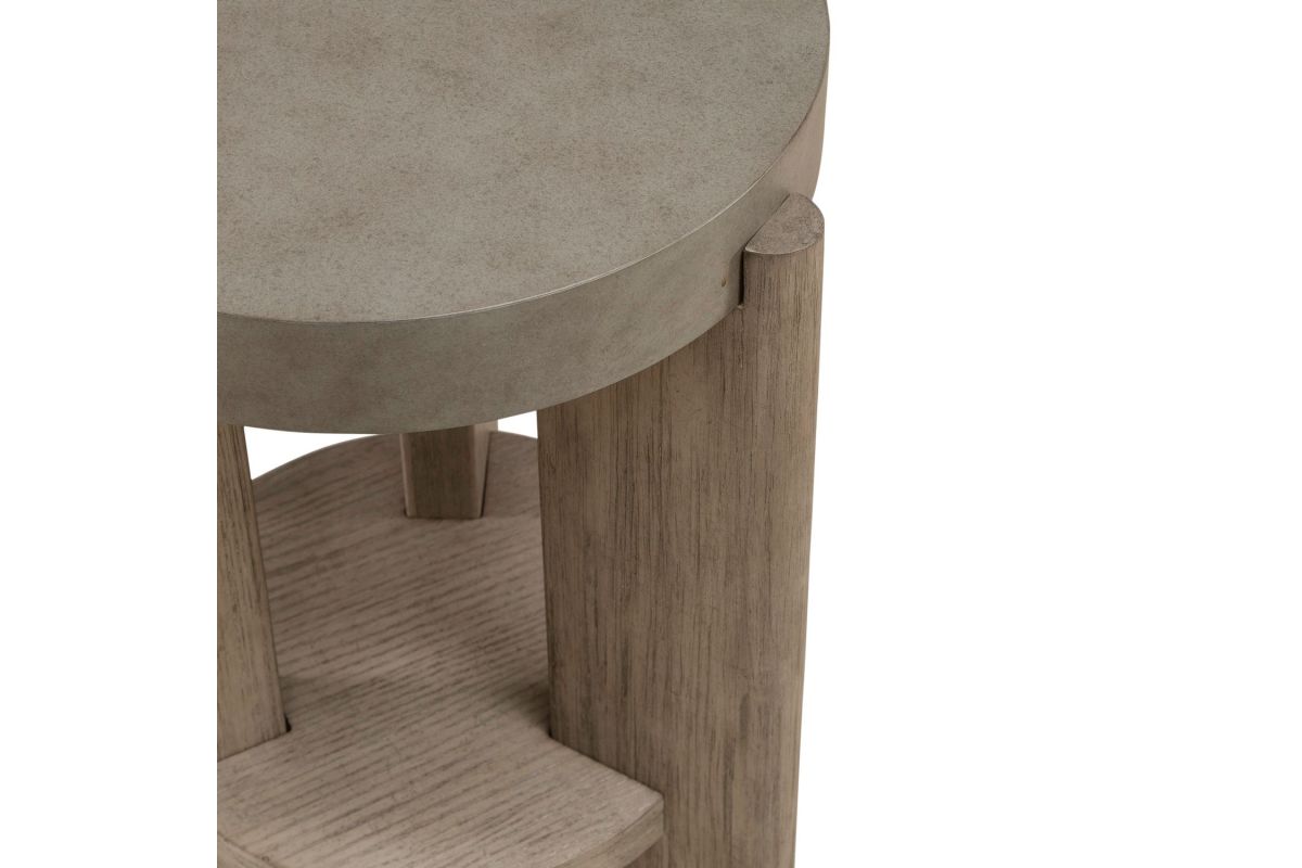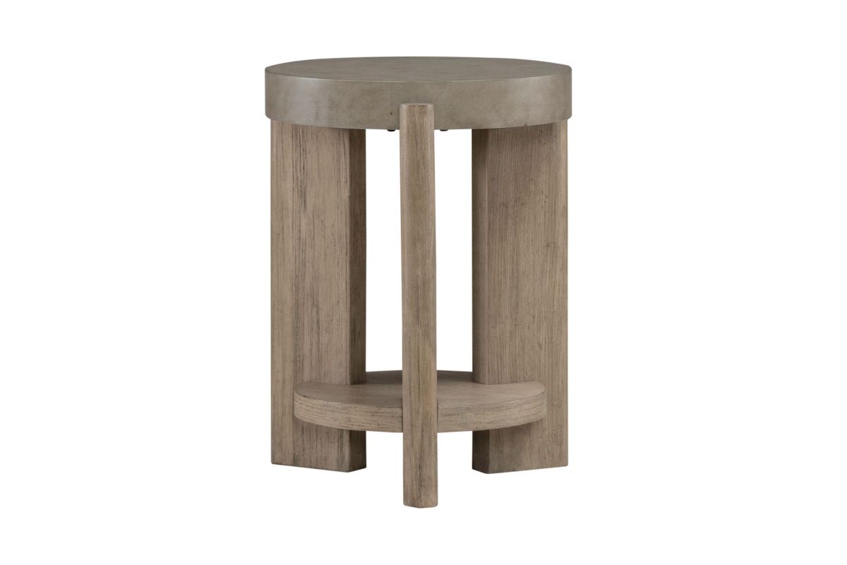 Feel at home with the Affinity chairside table. Crafted with excellence using Rubberwood solids and Quartered White Oak veneers, this table features a faux concrete top and rounded oblong legs in a Dusty Taupe finish. The bottom shelf is great for additional storage. The Affinity chairside table will be a true conversation piece for your living room, giving you an industrial vibe while remaining sleek and stylish.