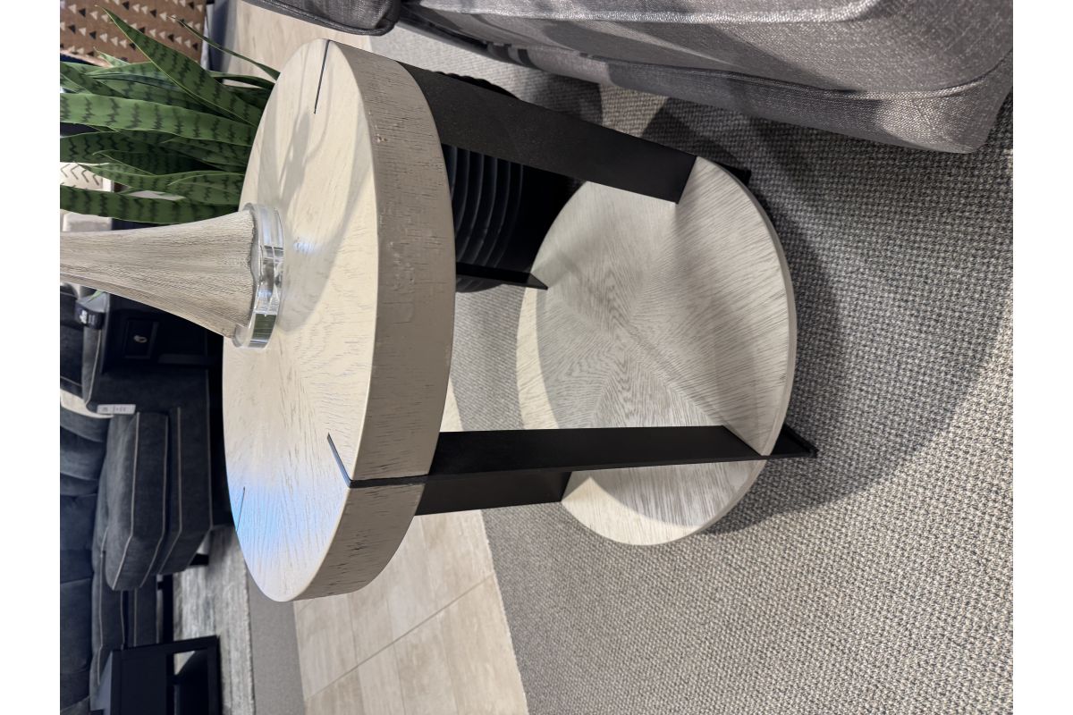 Elevate your decor with the Halo End Table, where the cool tones of grey oak veneer meet minimalist design. Whether placed beside your favorite armchair or serving as a bedside companion, this table adds a touch of modern elegance to your home.