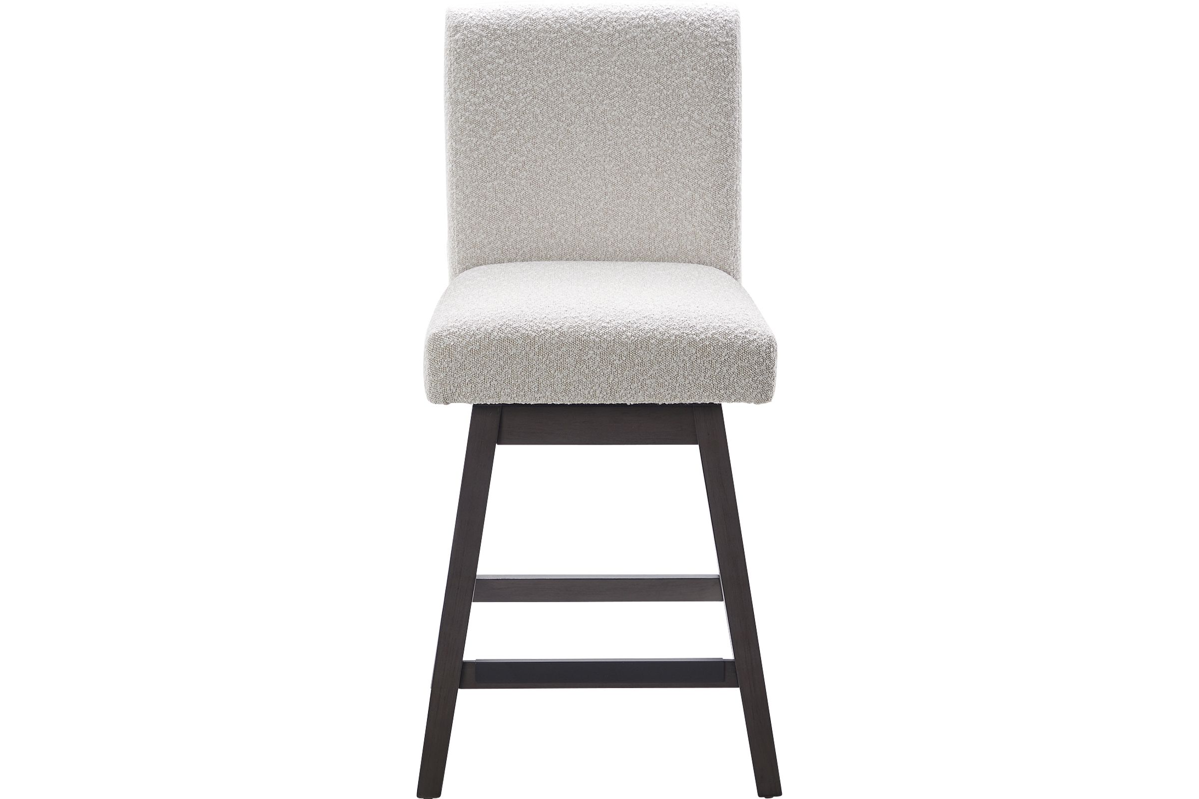 Introducing our exceptional Emmy white swivel counter chair, meticulously designed to elevate your comfort and style in the kitchen or bar area. With its innovative swivel feature, upholstered seat, and back, this chair seamlessly combines functionality and aesthetic appeal.