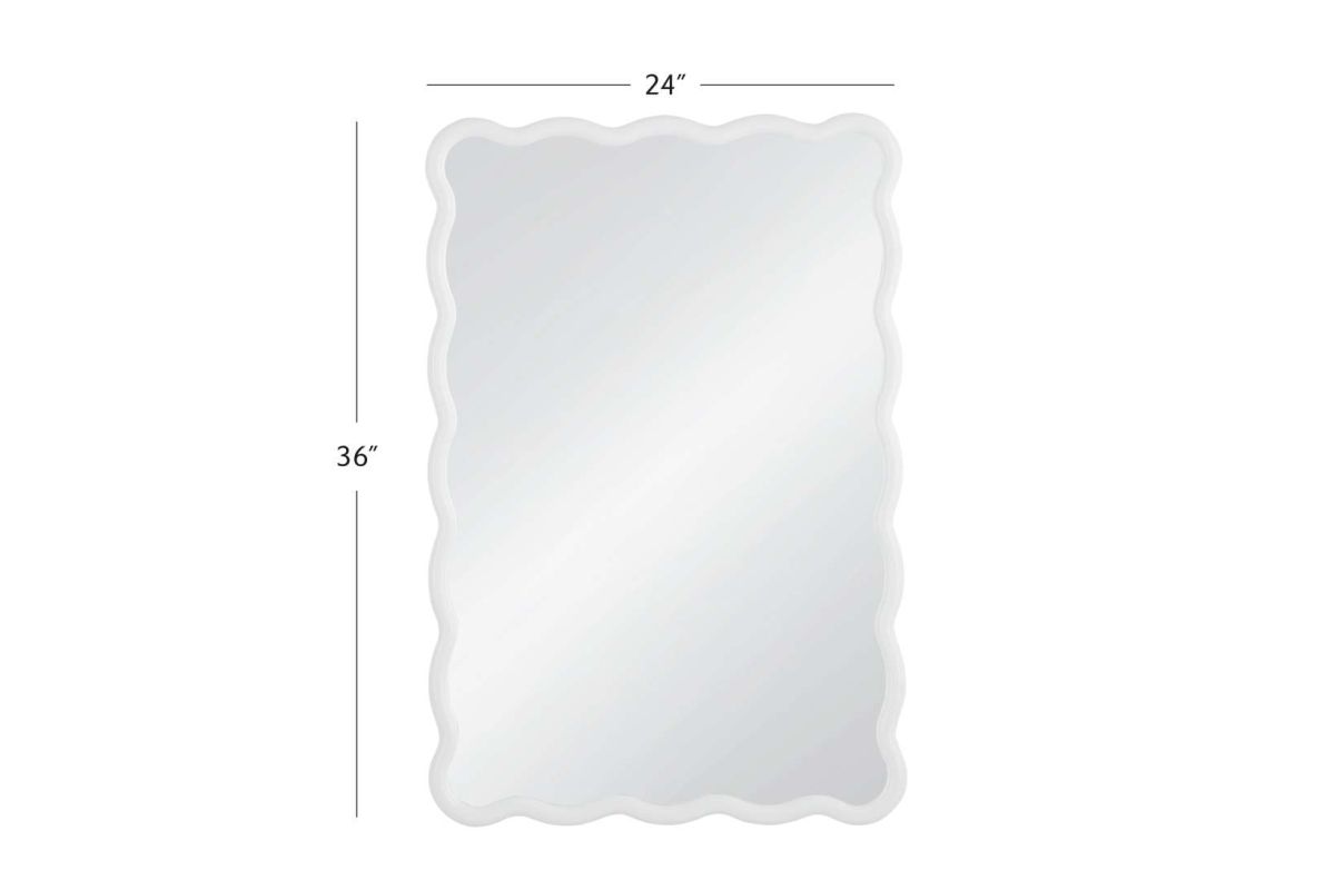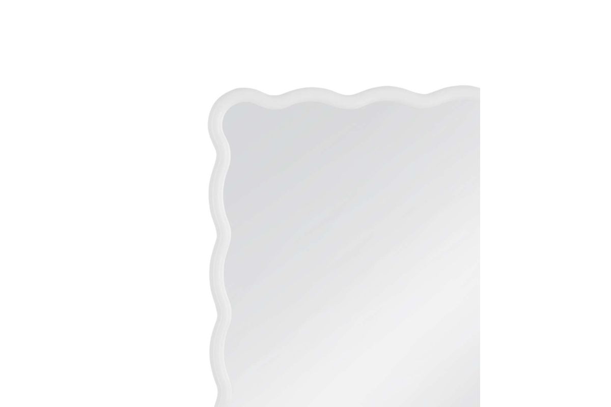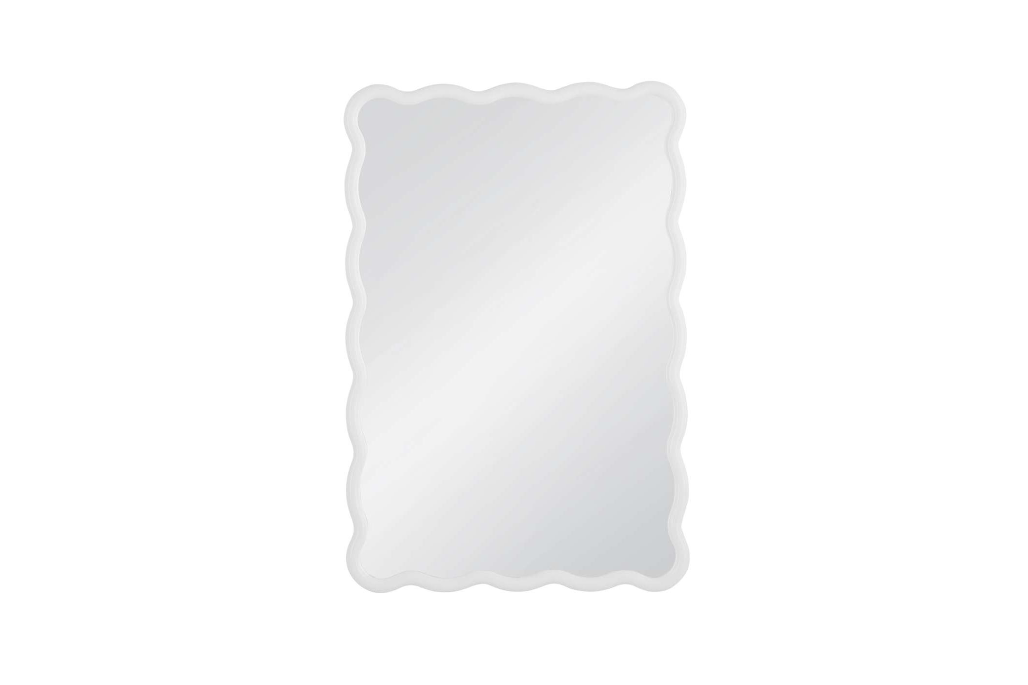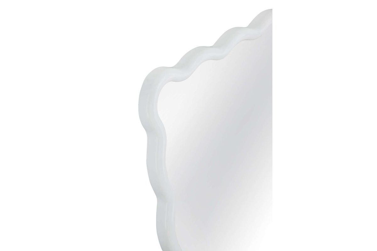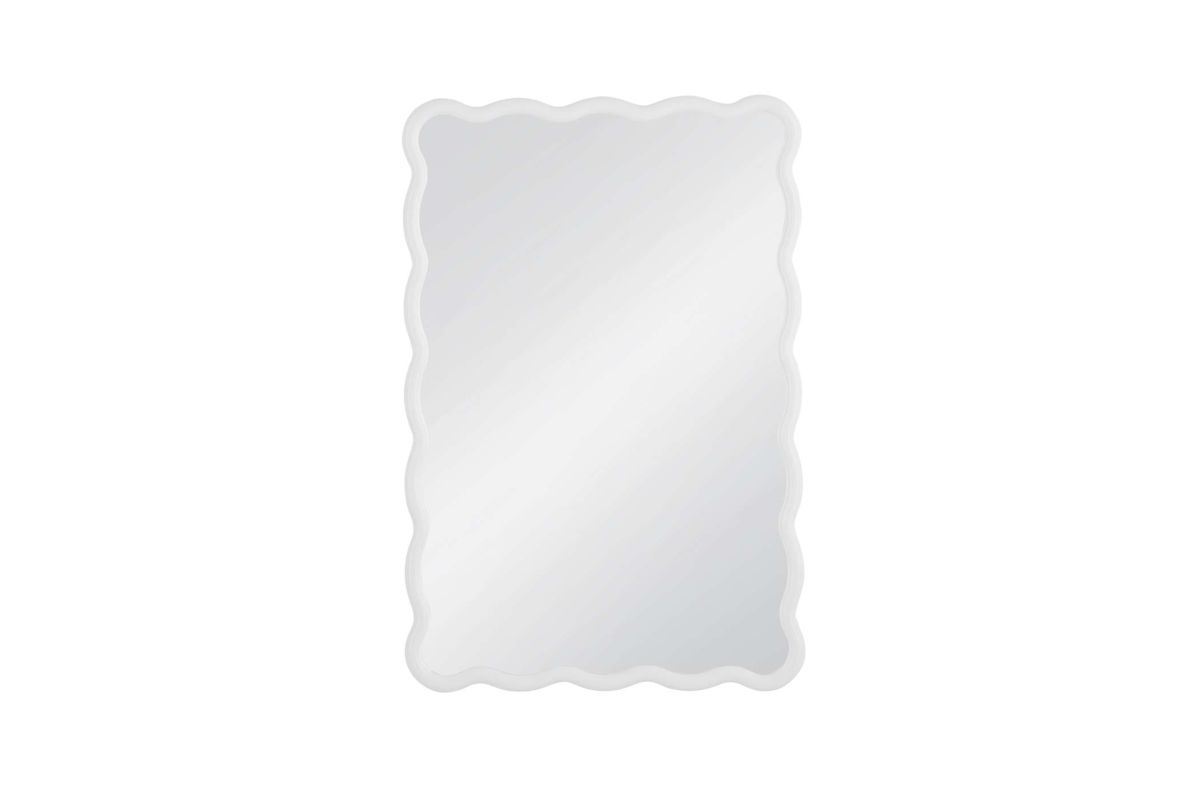 The Bryony Wall Mirror is an ideal accent to brighten your space, featuring a white lacquered mirror frame for a playful touch. Its wavy edges offer a fun twist on the traditional rectangular shape, adding personality to any room. Crafted with a white lacquered finish, this mirror effortlessly enhances your decor.