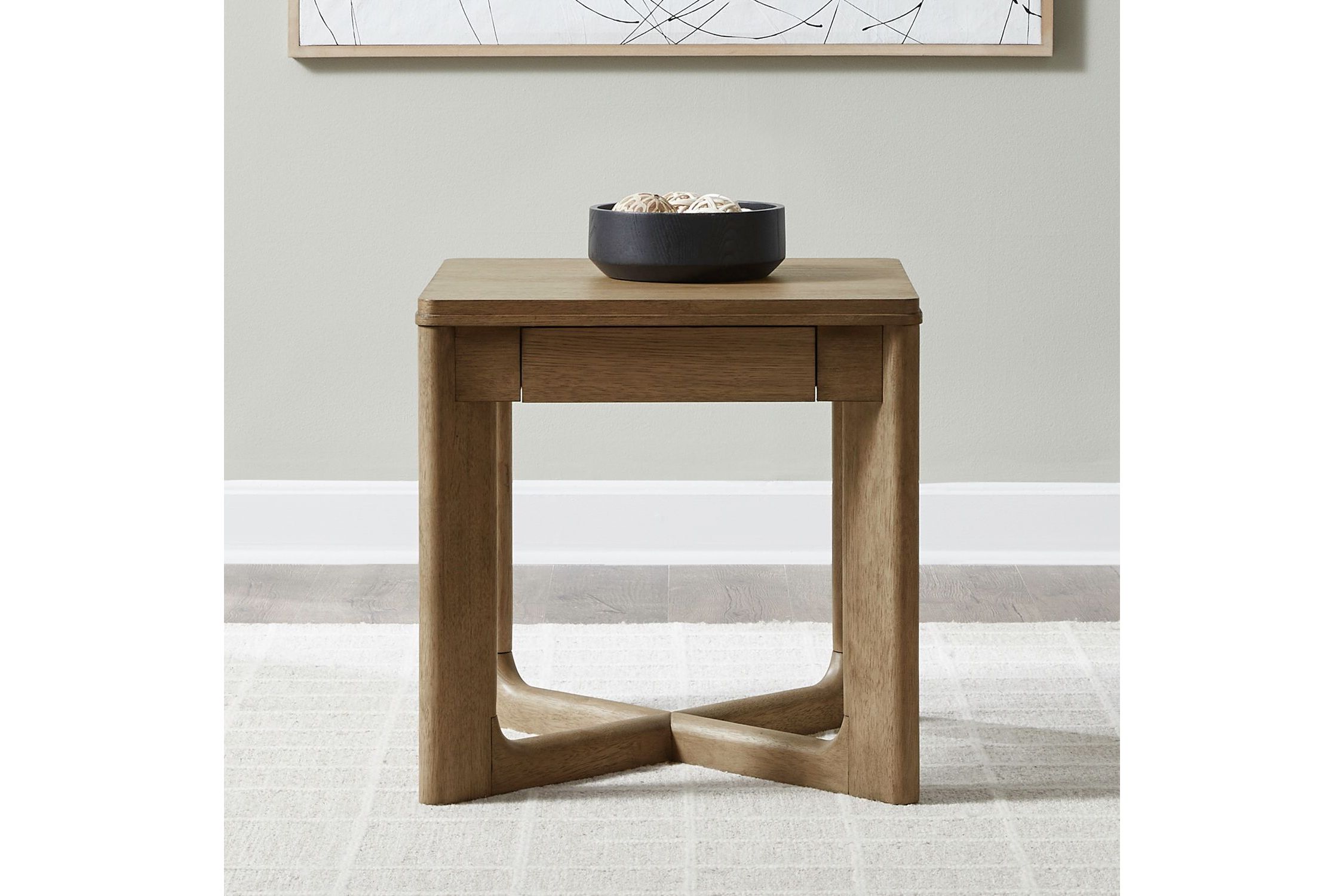 The Ballentine end table is a masterpiece of design that transforms your living space into an oasis of style and functionality. Crafted with excellence using Rubberwood solids and Quartered Cut White Oak veneers, this piece features a Weathered Bronze finish. The softly rounded oblong legs create a sense of elegance and continuity, flowing seamlessly to a uniquely shaped center trestle. This distinctive design element adds an artistic touch. The end table has one interior storage drawer, discreetly tucked away for a clean and seamless appearance. Finger joint pulls replace traditional hardware, offering a minimalist and modern look that complements the table's overall design. Form and function coexist seamlessly with the Ballentine end table.