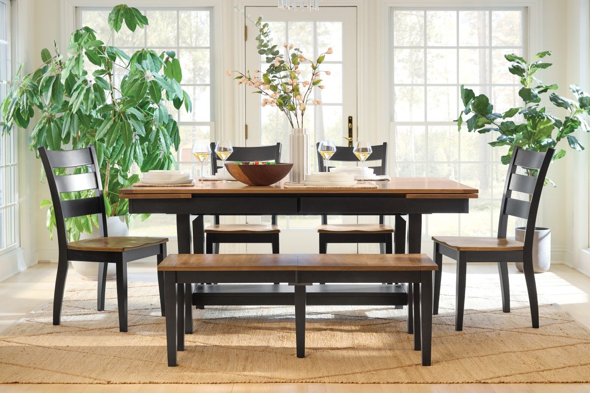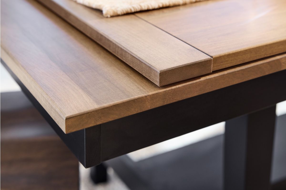 Featuring two 14" self-storing extension leaves this table easily transitions from intimate family dinners to gathering for holiday meals.