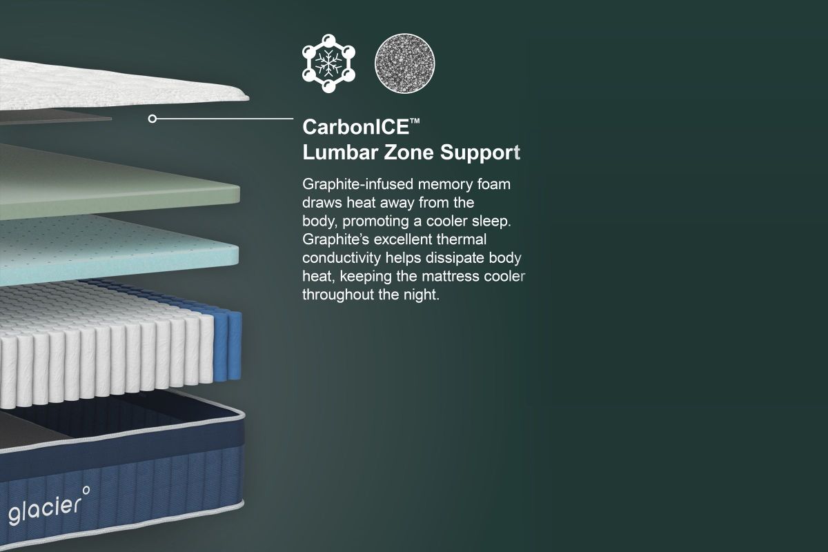 • CarbonICE Graphite-infused memory foam lumbar zone support layer for additional support and pressure relief where you need it.