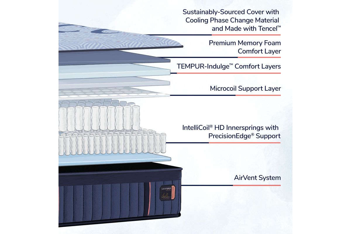 The Stearns & Foster® Elite Hybrid Collection is crafted to redefine what a mattress can be. Combining the responsive support of IntelliCoil® innersprings with the plush, pressure-relieving comfort of TEMPUR-Indulge™ Memory Foam, developed by the sleep experts at Tempur-Pedic®, this exclusive hybrid design delivers supportive comfort you won’t find in any other mattress. Each mattress is thoughtfully crafted with hand-sewn details and premium, breathable premium materials that enhance airflow and help regulate temperature for a cooler, more restful night’s sleep.