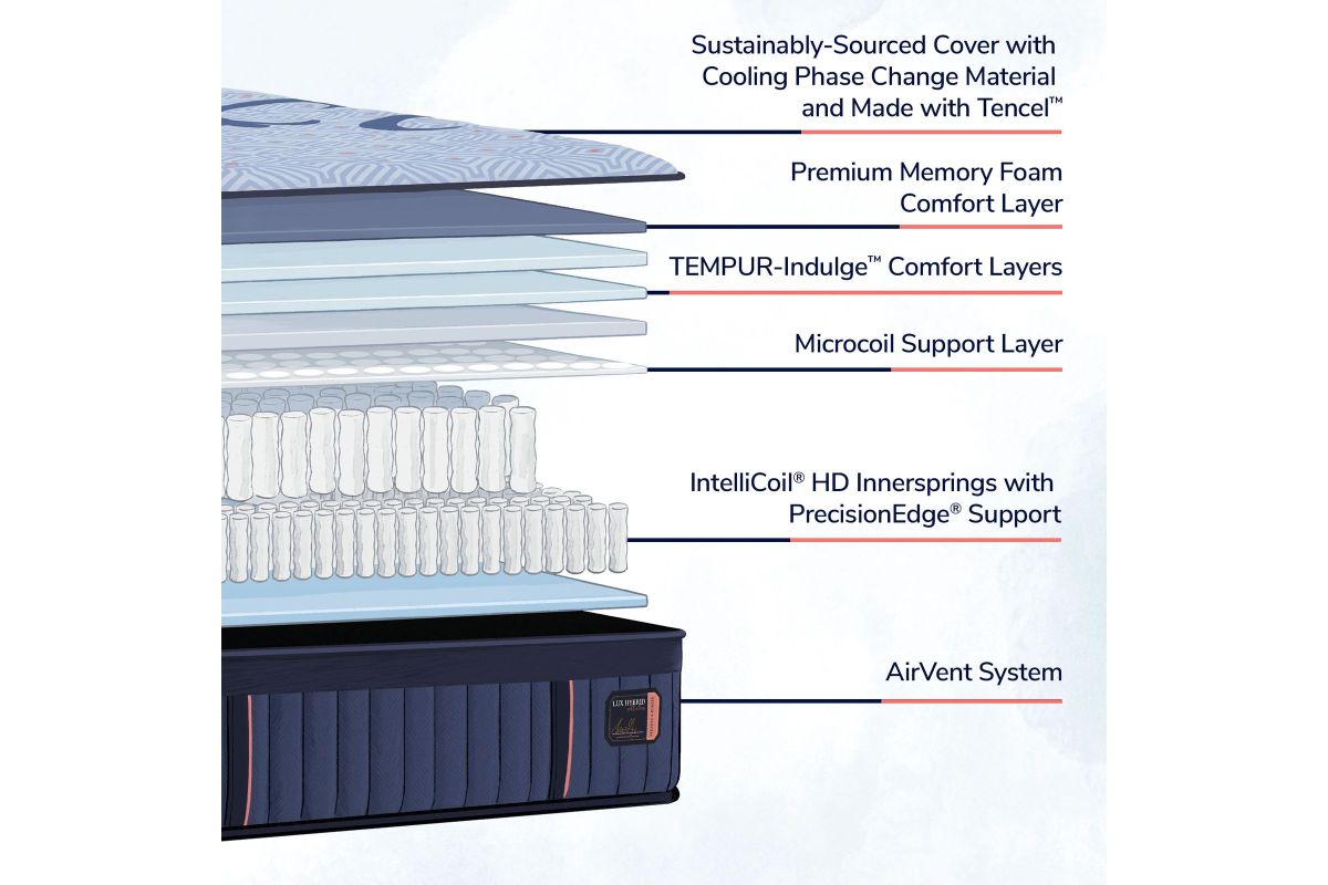 The Stearns & Foster® Elite Hybrid Collection is crafted to redefine what a mattress can be. Combining the responsive support of IntelliCoil® innersprings with the plush, pressure-relieving comfort of TEMPUR-Indulge™ Memory Foam, developed by the sleep experts at Tempur-Pedic®, this exclusive hybrid design delivers supportive comfort you won’t find in any other mattress. Each mattress is thoughtfully crafted with hand-sewn details and premium, breathable premium materials that enhance airflow and help regulate temperature for a cooler, more restful night’s sleep.