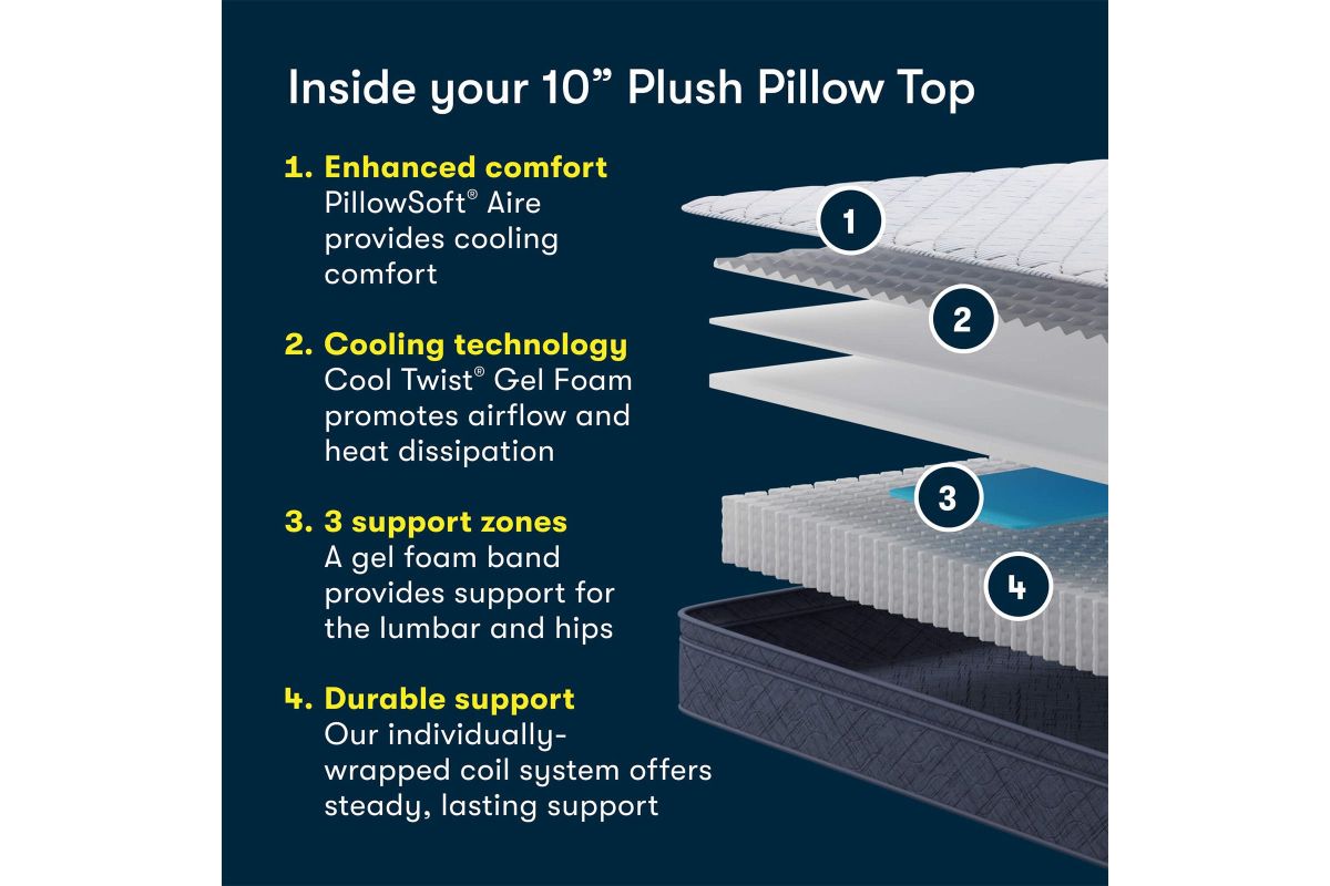 The pillowtop layer gently cradles your body, helping reduce pressure at the shoulders, hips, and back while providing a softer feel ideal for side and combination sleepers.
