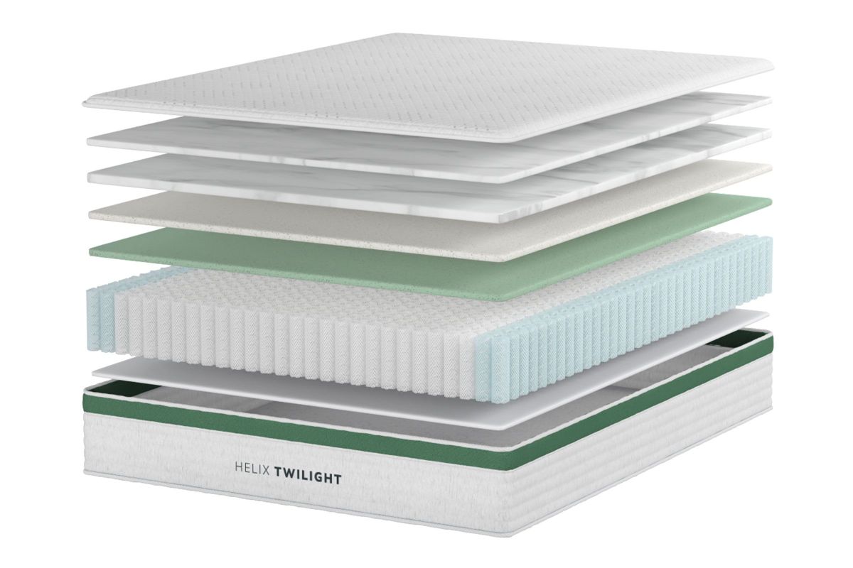 The Twilight is Helix's firm hybrid mattress featuring a dense foam feel that supports spinal alignment and provides pressure relief at your hips and shoulders. This mattress combines 3 layers of high-density foam with hundreds of individually wrapped steel coils and features reinforced edge support to provide excellent motion isolation and durability.