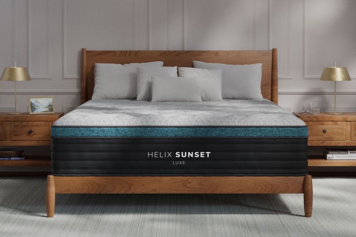 The Sunset Luxe is Helix's most popular premium mattress designed with a soft-feel and multiple layers of high-quality memory foam for comforting pressure relief at your hips and shoulders. This mattress includes a plush pillow top, 3 layers of high-density foam, and individually wrapped steel coils with zoned lumbar support and a fully reinforced perimeter.