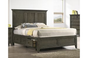 The San Mateo Panel Bed combines traditional and modern styles to create a stylish and elegant look. Designed with both comfort and aesthetics in mind, this piece brings both form and function to your bedroom. The Grey finish and aged bronze hardware, this bed collection exudes warmth and sophistication.