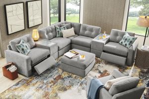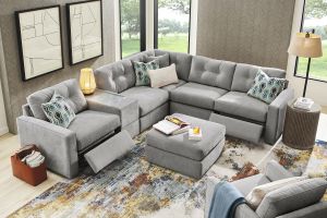 Discover the limitless possibilities of the ModularOne sectional, thoughtfully designed with comfort and flexibility in mind. This customizable seating solution features individual pieces that can be reconfigured to the shape you need. Game days, movie nights, sleepovers, and everyday relaxation are all better when the seating arrangement you want is always right at your fingertips. Each individual piece is upholstered on all sides in soft, chenille performance fabric that includes Repreve yarn, made with recycled plastic bottles. The open seating includes a chaise and has welted track arms, top-stitched seat cushions and button-tufted back cushions for an elegant silhouette. Media consoles provide hidden storage, USB charging ports, wireless charging, Bluetooth speakers, and double as side tables with sleek acrylic tops.