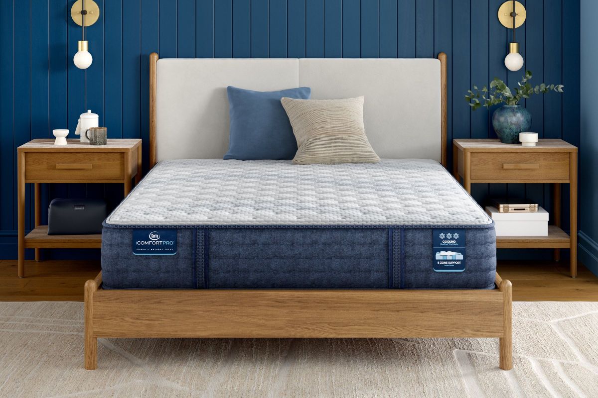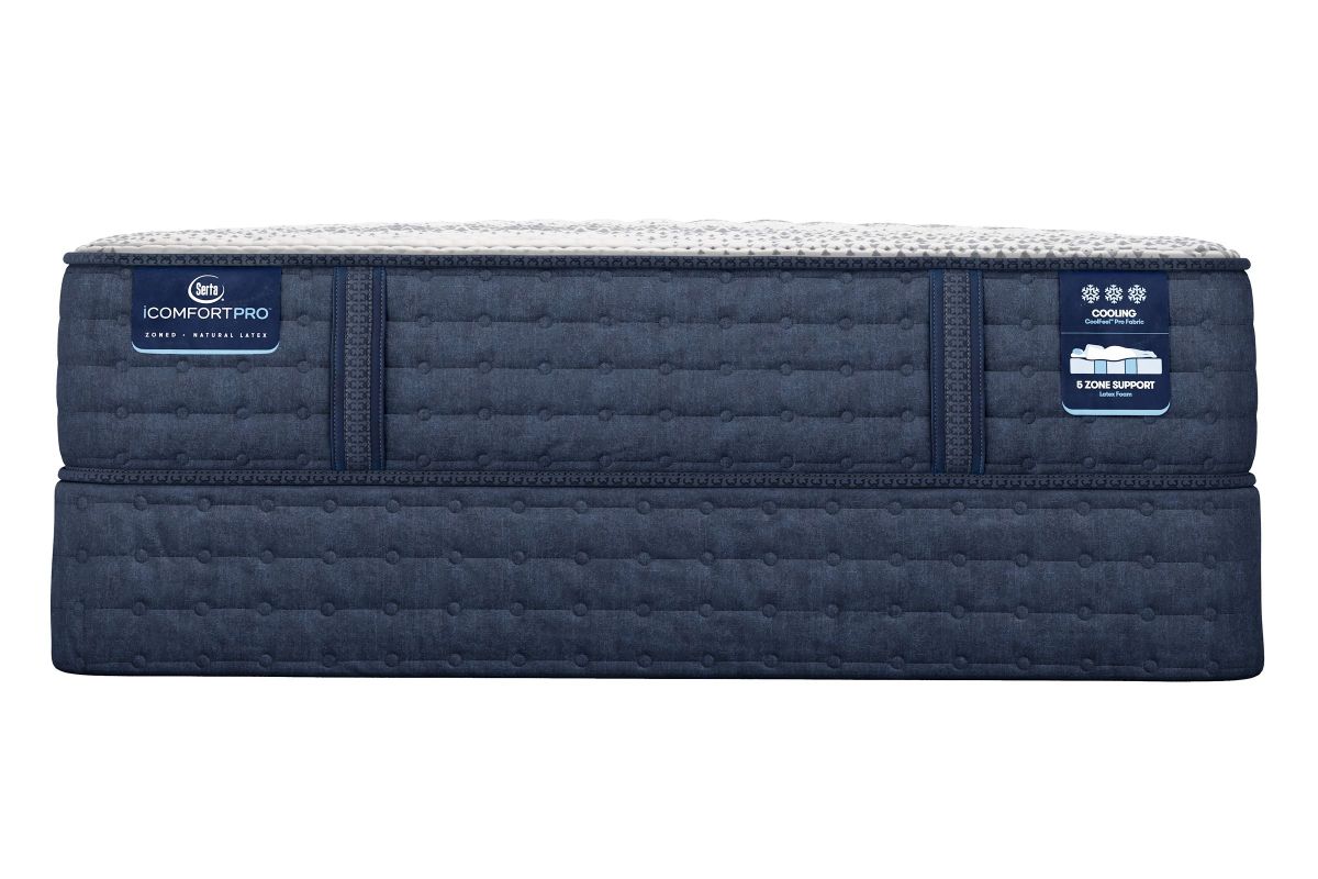Serta iComfortPro, Serta's most advanced mattress that features layers of premium latex foam in a 5-zone comfort system. The new iComfortPro features 5 support zones made from natural latex that retains its shape to promote better spinal alignment, while contouring to your body and providing even pressure relief. Why latex? Latex foam comes from rubber trees, making it naturally durable, non-toxic, breathable with contouring comfort and pressure relief where you need it most. Additionally, unlike synthetic foams, latex foam doesn’t trap heat. Instead, it is naturally temperature regulating and breathable. The quilted top features a cool-to-the-touch fabric designed to help you fall asleep more easily.