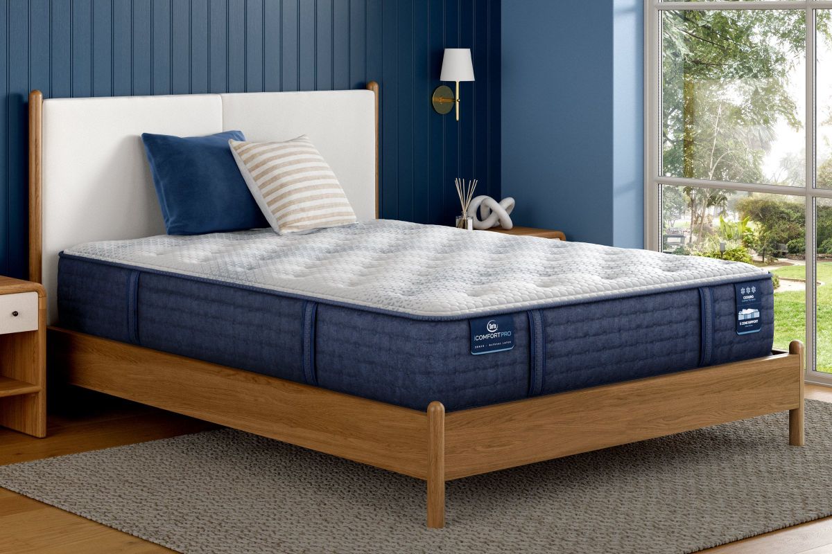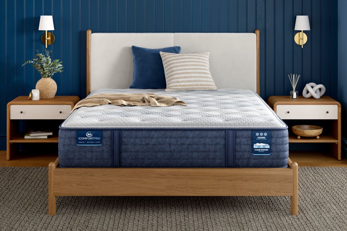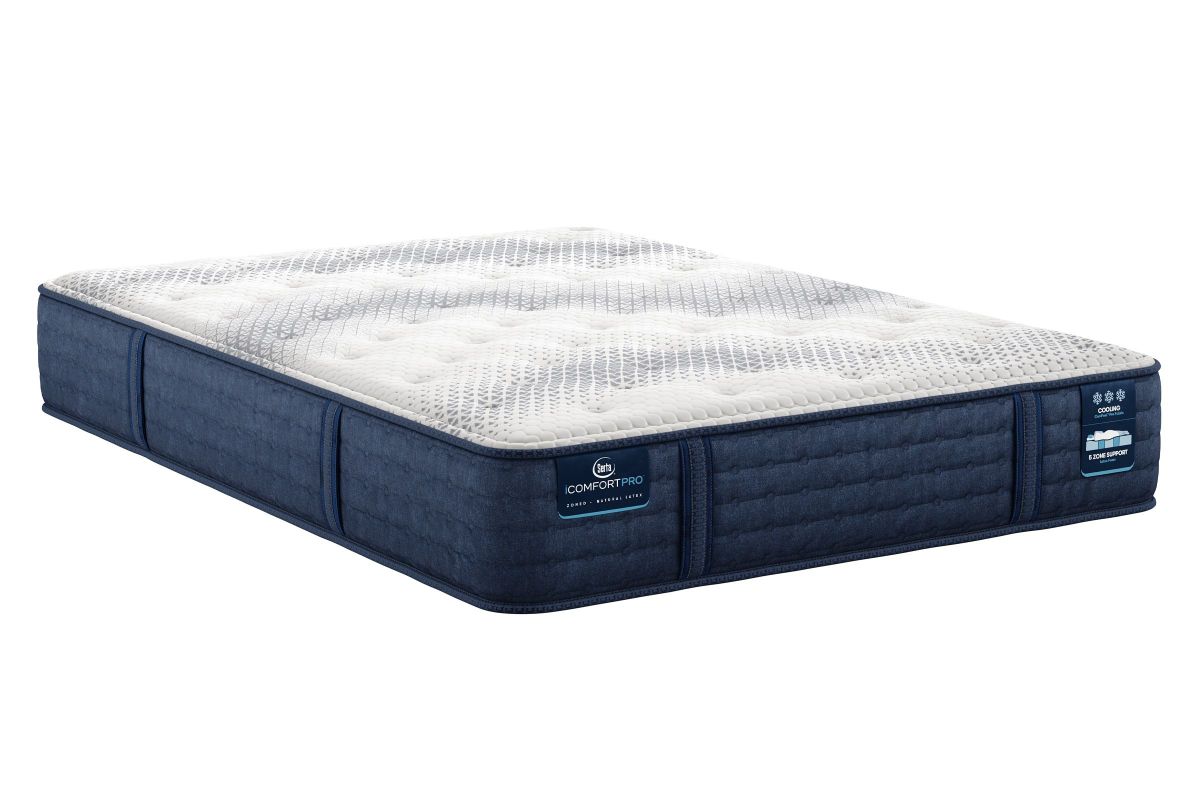 Serta iComfortPro, Serta's most advanced mattress that features layers of premium latex foam in a 5-zone comfort system. The new iComfortPro features 5 support zones made from natural latex that retains its shape to promote better spinal alignment, while contouring to your body and providing even pressure relief. Why latex? Latex foam comes from rubber trees, making it naturally durable, non-toxic, breathable with contouring comfort and pressure relief where you need it most. Additionally, unlike synthetic foams, latex foam doesn’t trap heat. Instead, it is naturally temperature regulating and breathable. The quilted top features a cool-to-the-touch fabric designed to help you fall asleep more easily.