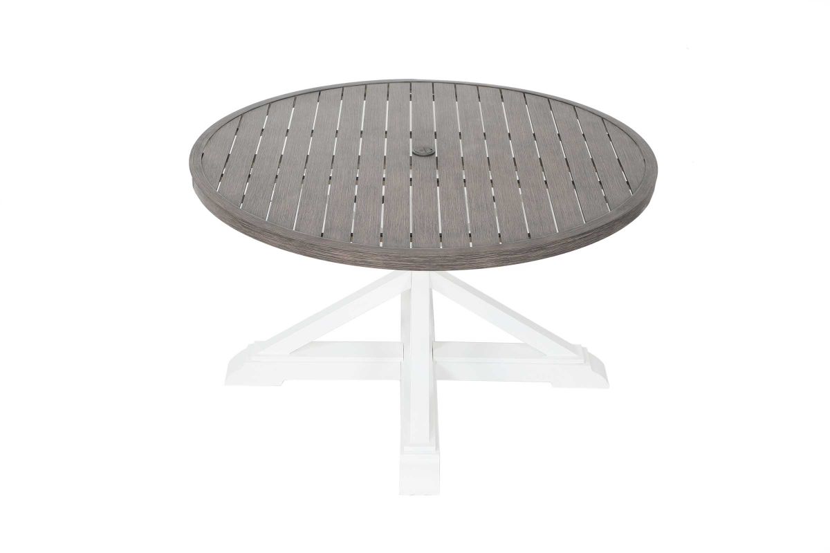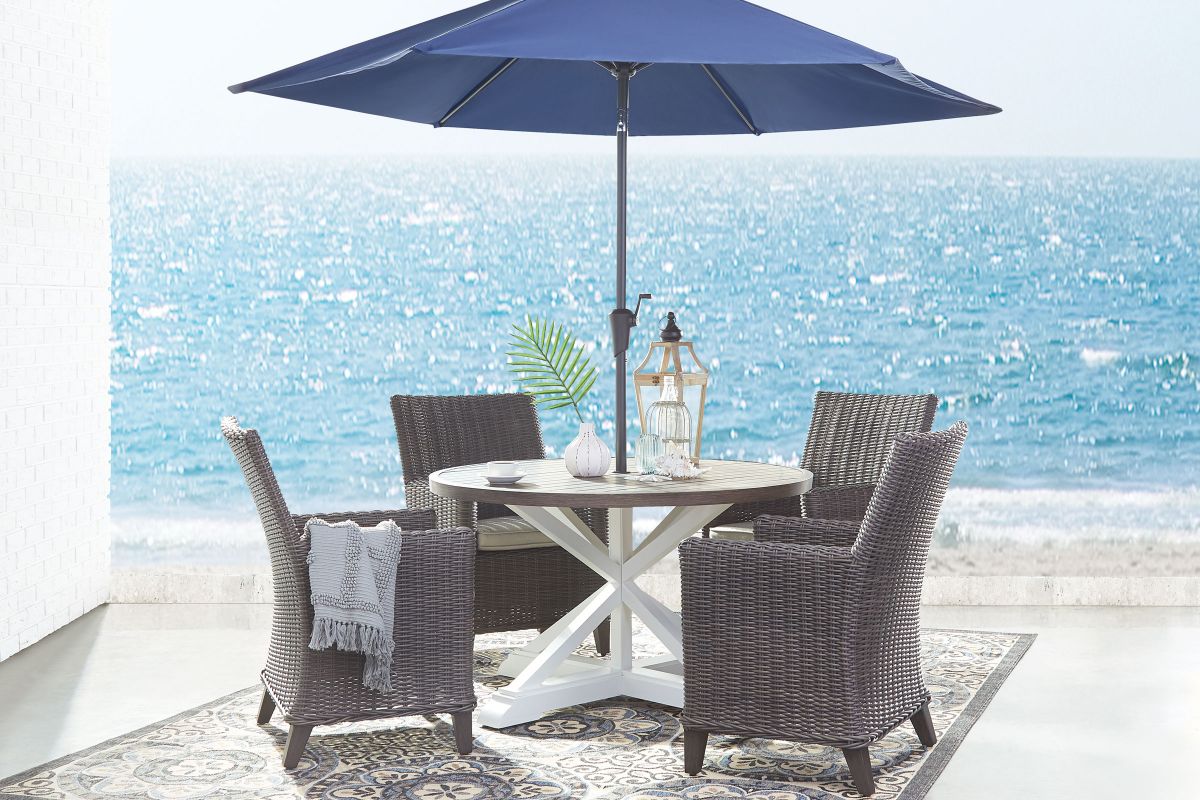 Sorry, the Farmland Outdoor Round Table + 4 Chairs is no longer available. We've left this page up for reference only. Check out the great alternatives on this page or call 248-481-2208 or Chat with a Gardner White Sales Specialist about similar products.