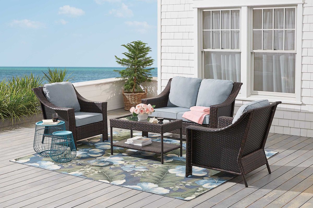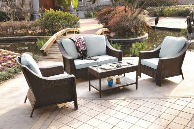 Sorry, the Bray Patio Loveseat + 2 Club Chairs + Cocktail Table + End Table is no longer available. We've left this page up for reference only. Check out the great alternatives on this page or call 248-481-2208 or Chat with a Gardner White Sales Specialist about similar products.