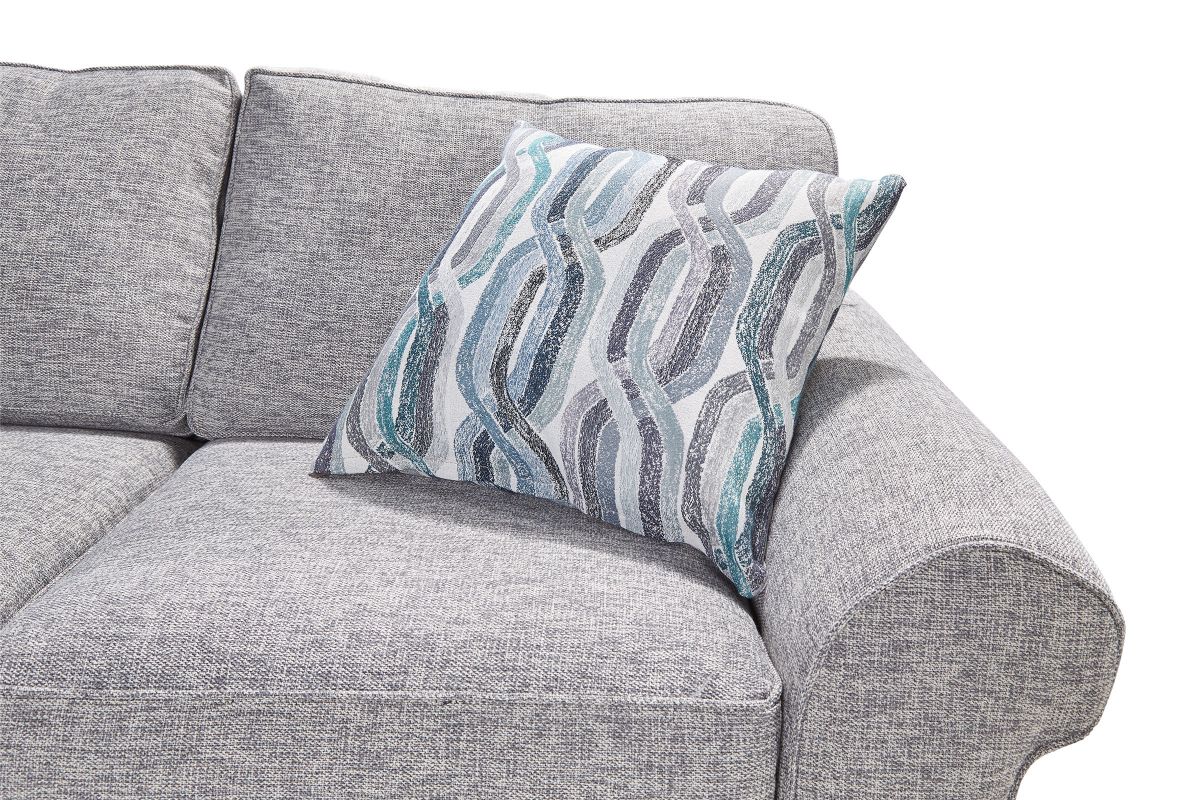 The Whitney Collection is upholstered in a granite-colored fabric and accented with colorfully patterned throw pillows. The deep, plush cushions and overstuffed arms will add a touch of modern comfort to your living room. Make this collection your own by customizing colors and pieces to fit your home perfectly.