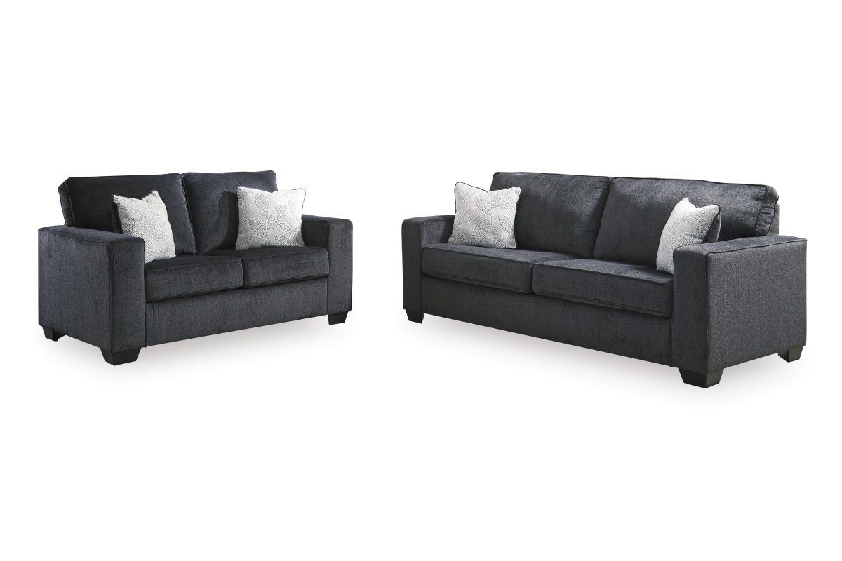 If style is the question, then the Galaxy Collection is the answer. Sporting clean lines and sleek track arms, the decidedly contemporary pieces are enhanced with plump cushioning and a chenille-feel upholstery, so pleasing to the touch. Sure to play well with so many color schemes, this collection in slate gray includes understated floral pattern pillows for fashionably fresh appeal.