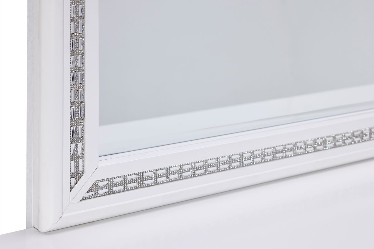 - The white finish creates a neutral backdrop for the radiant crystal-like touches that adorn each room