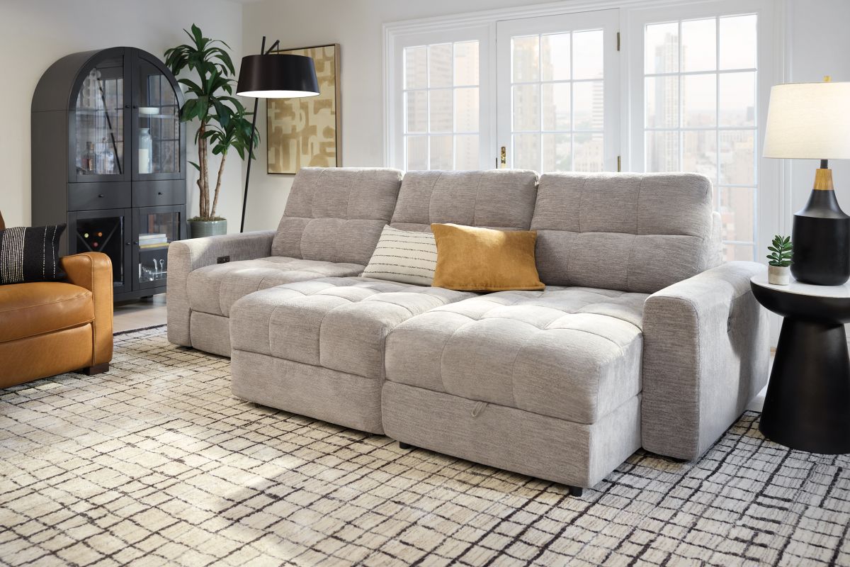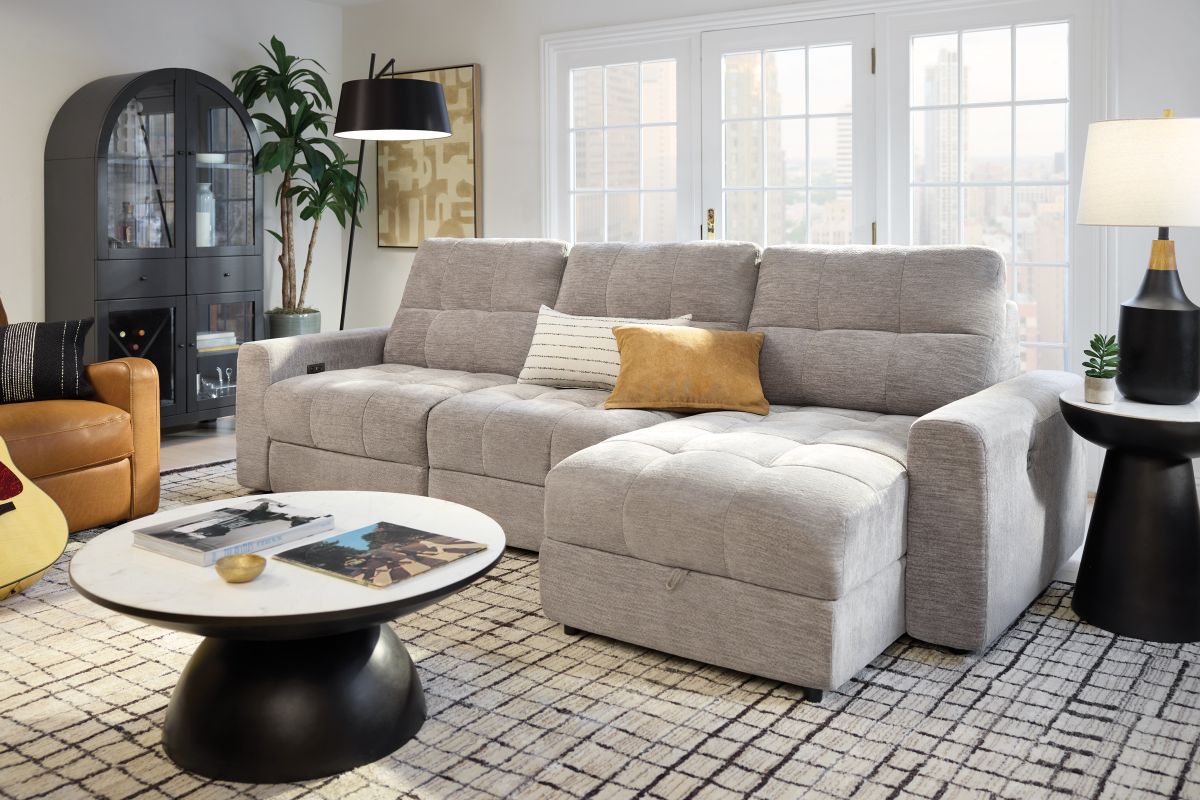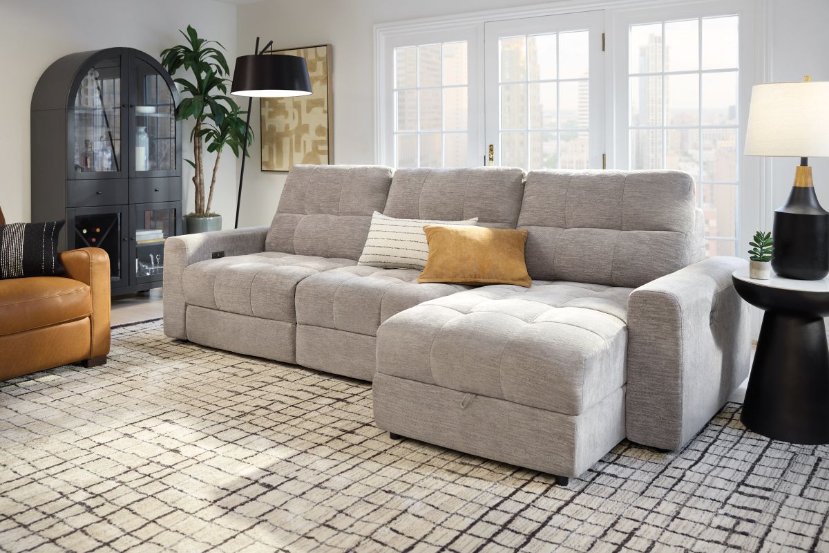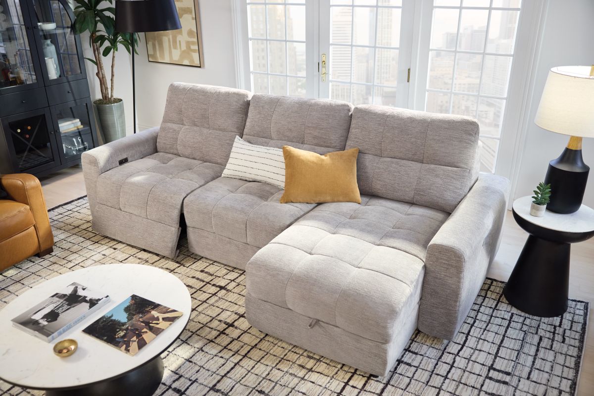 Elevate your living space with the versatile and comfortable Phoenix collection, thoughtfully crafted for both style and functionality. With its modular design, this sectional allows for customizable configurations to perfectly fit your space and lifestyle. Featuring power reclining seats with effortless relaxation at the touch of a button and smart storage solutions like a lift-top chaise to keep your essentials close at hand. The wall-hugger design saves valuable space by allowing the sectional to recline while placed just inches away from the wall. Upholstered in a soft, durable fabric, the Phoenix features generously padded cushions and tufted details for a sleek yet cozy look. Whether you’re lounging solo or entertaining guests, the Phoenix delivers unmatched comfort and convenience.
