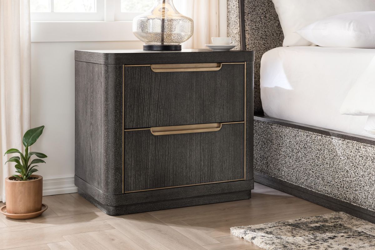 This contemporary collection is designed to elicit a very soft, casual and inviting feel with its softened shapes and radiused corners. The subtly bronzed tone hardware and raised metal trim throughout the various pieces enhance the casual, sophisticated nature of Preston Heights.