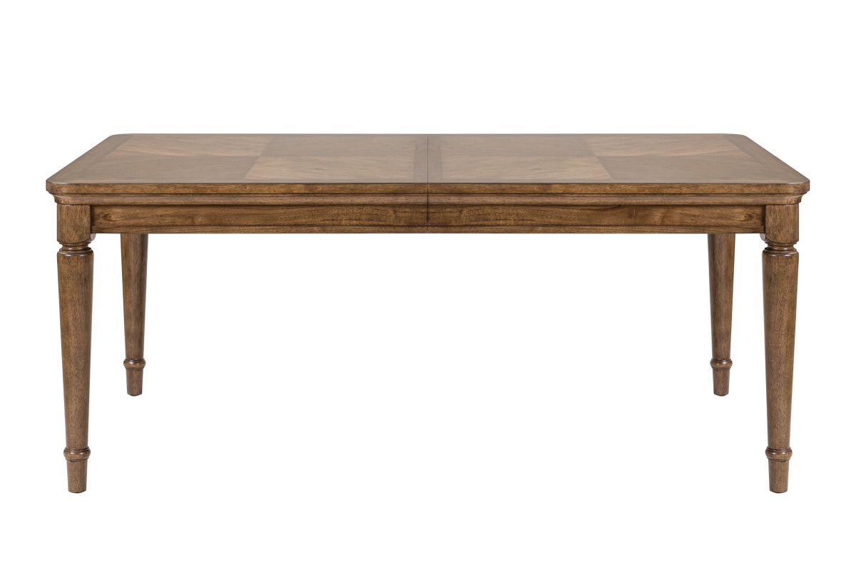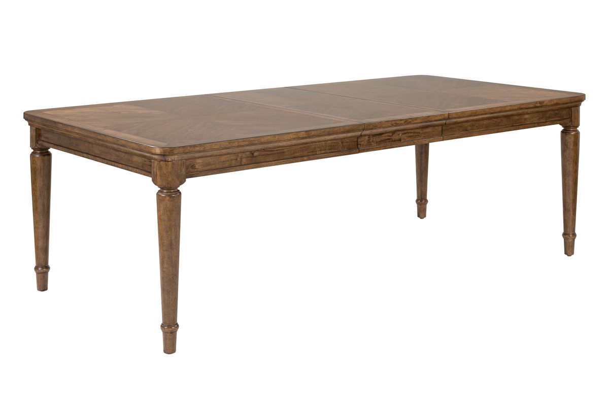 The Tuscany Collection brings timeless design and thoughtful craftsmanship to your dining space. Featuring softly rounded corners, saber chair legs, and subtle wood frame accents, each piece is rich in detail and comfort. Premium touches like antique brass knobs, felt-lined top drawers, and a removable silverware tray enhance function and elegance. A self-storing 18-inch leaf with an easy-glide track system and 4-way matched fancy face veneer add both beauty and versatility to every gathering.
