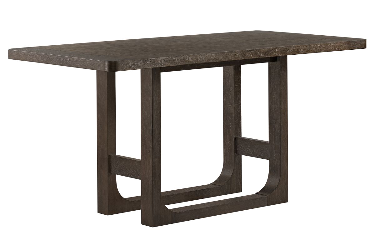 The Hadley Dining Collection seamlessly combines timeless design with enduring craftsmanship, featuring soft, livable finishes that beautifully showcase the natural oak veneer grain. The fixed-top counter-height table comfortably seat six or more, making them ideal for both meals and game nights. Each table showcases a planked tabletop design along the length, bordered by a non-planked horizontal oak veneer on each end, adding visual interest and movement. The sleigh-style bases with rounded inside corners introduce a touch of softness to the overall design. Complementing the tables are slat-back chairs and benches, each equipped with comfortable 100% polyester upholstered seats and a stretcher system for added strength and durability. This collection seamlessly combines aesthetic appeal with practical functionality, making it a versatile addition to any dining space.