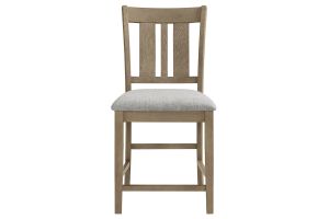 The Hadley Dining Collection seamlessly combines timeless design with enduring craftsmanship, featuring soft, livable finishes that beautifully showcase the natural oak veneer grain. The fixed-top counter-height table comfortably seat six or more, making them ideal for both meals and game nights. Each table showcases a planked tabletop design along the length, bordered by a non-planked horizontal oak veneer on each end, adding visual interest and movement. The sleigh-style bases with rounded inside corners introduce a touch of softness to the overall design. Complementing the tables are slat-back chairs and benches, each equipped with comfortable 100% polyester upholstered seats and a stretcher system for added strength and durability. This collection seamlessly combines aesthetic appeal with practical functionality, making it a versatile addition to any dining space.
