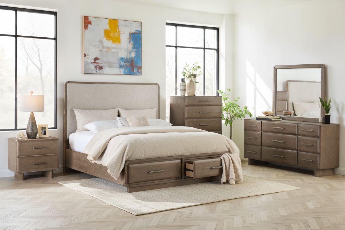 Discover the perfect harmony of classic elegance and modern innovation with the Bentley collection. Crafted with oak-embossed birch veneer in a refined White Oak finish, this collection brings natural texture and warmth to any bedroom. The upholstered panel headboard offers a soft, tailored accent, while cedar-lined bottom drawers provide luxurious, aromatic storage. Designed for today’s lifestyle, Bentley features an adjustable LED nightlight, integrated USB-A and USB-C charging ports, and a built-in 3-in-1 wireless charging pad—offering seamless convenience without sacrificing style.