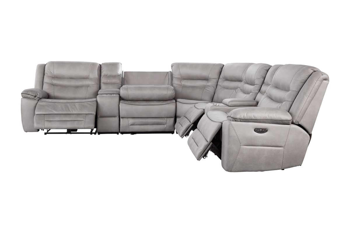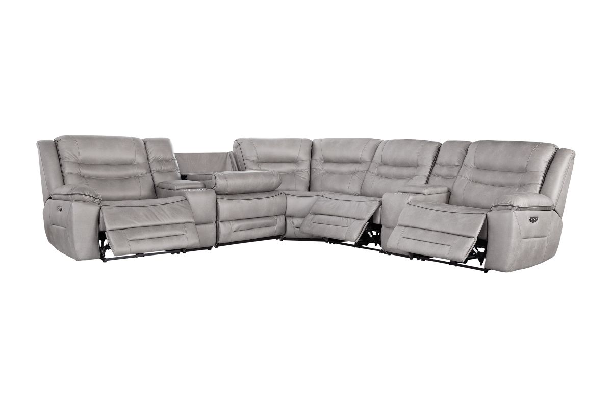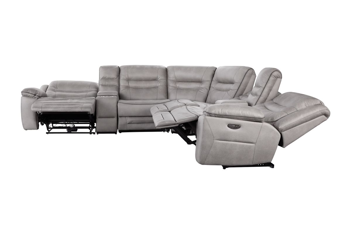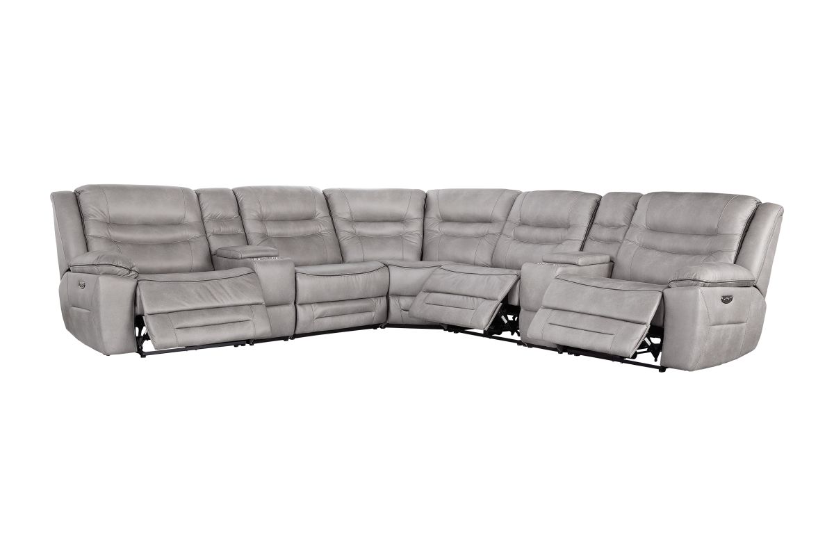 Upgrade your living space with the Rockford Grey Dual Power Reclining 7-Piece Sectional— where comfort meets innovation. Wrapped in soft, durable grey polyester upholstery, this sectional blends plush relaxation with sleek modern design.