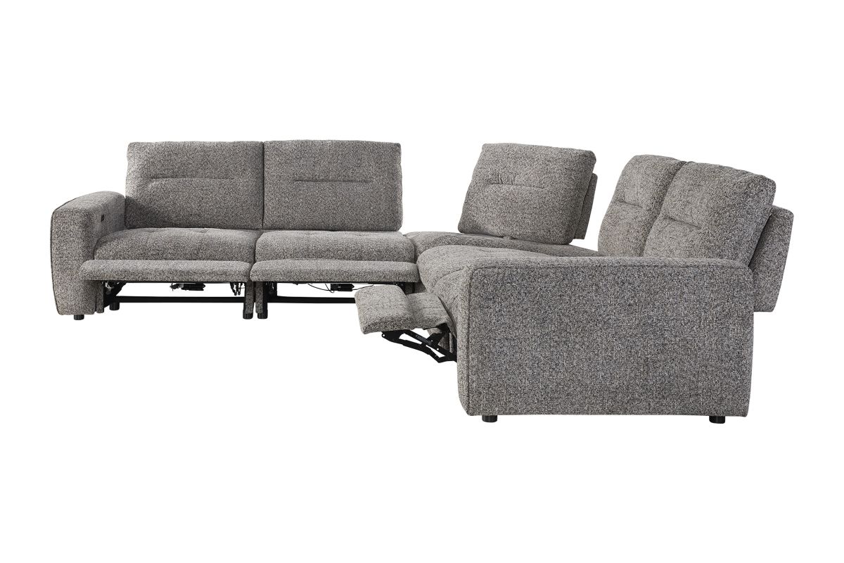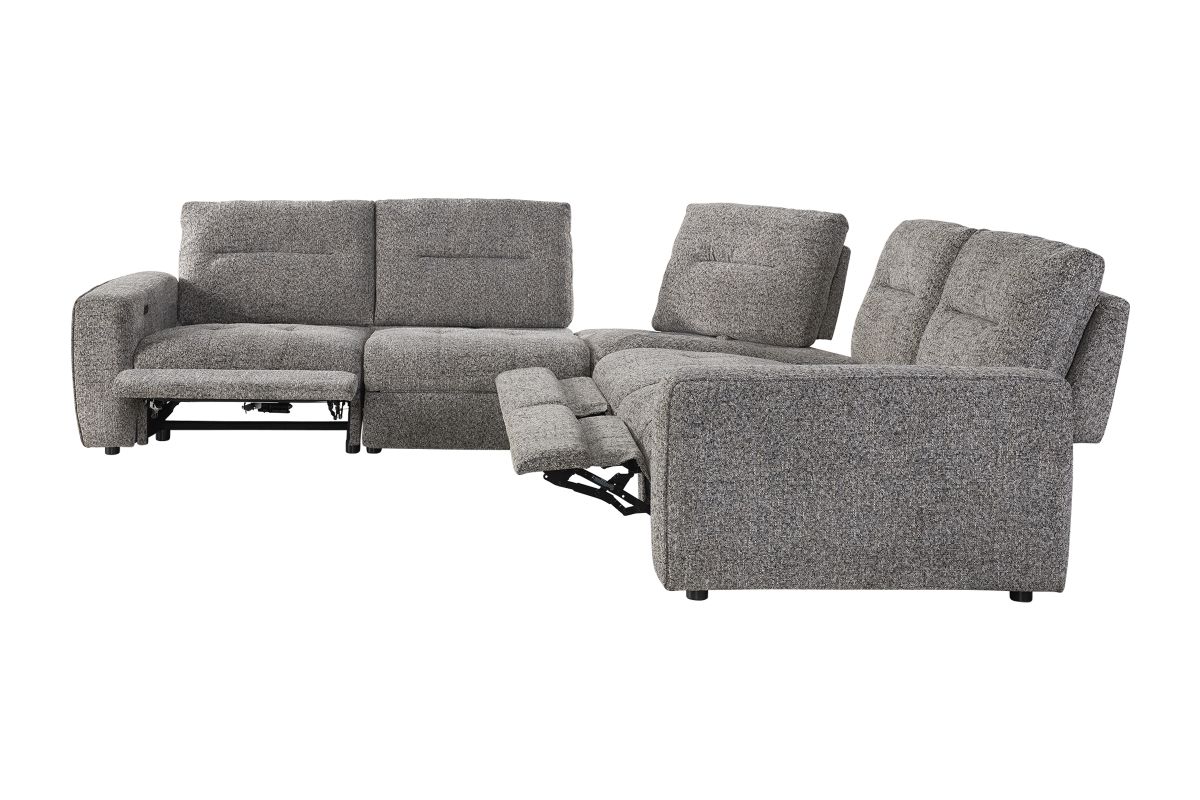 Experience modern comfort at its best with the Polo Power Reclining 5-Piece Sectional — a spacious, contemporary design built for everyday lounging, movie nights, and effortless relaxation. Wrapped in a soft, heathered performance fabric, Polo combines clean lines with generous cushioning for a look that feels both stylish and inviting.