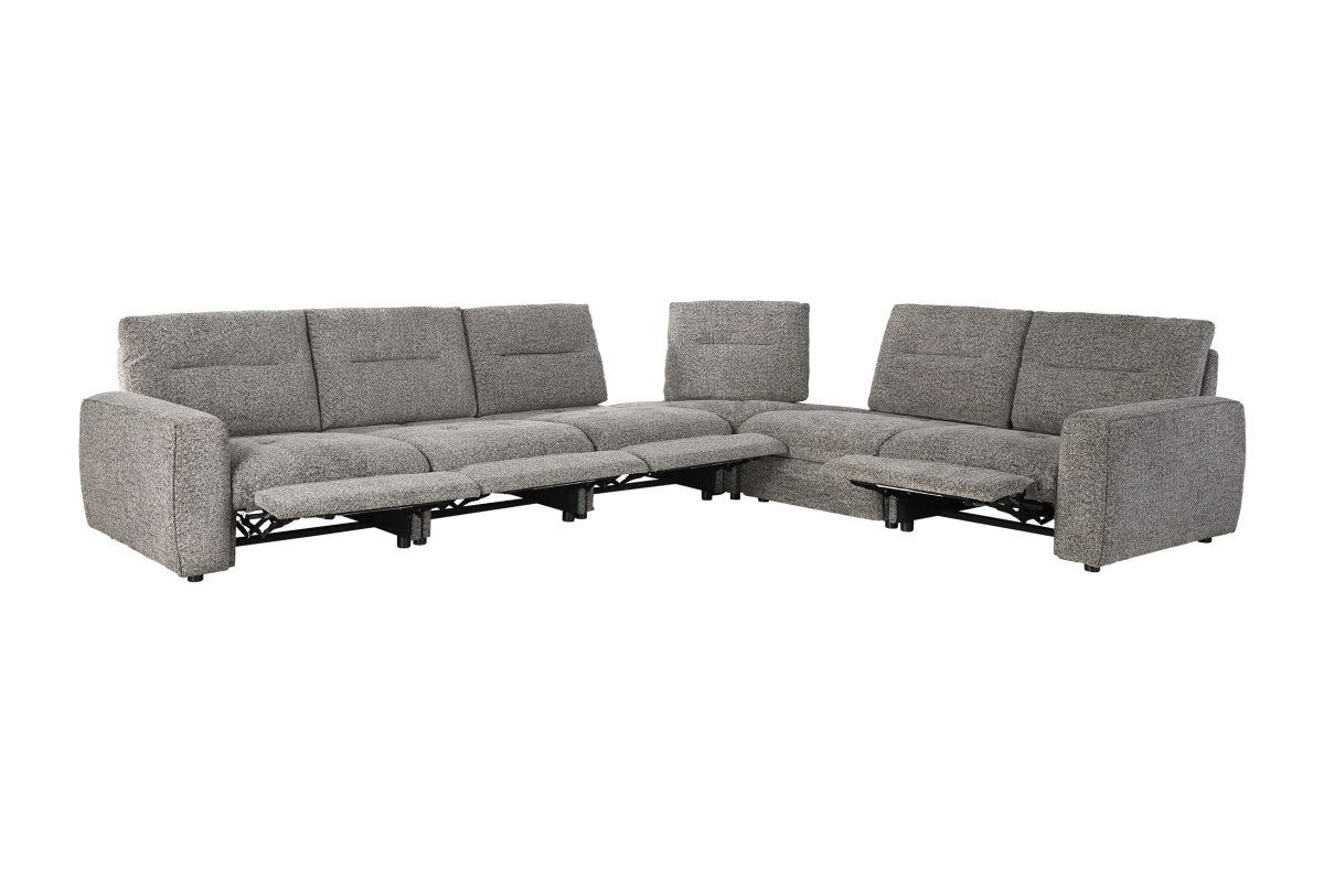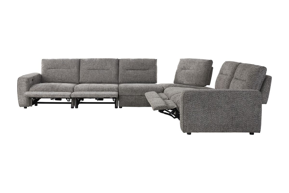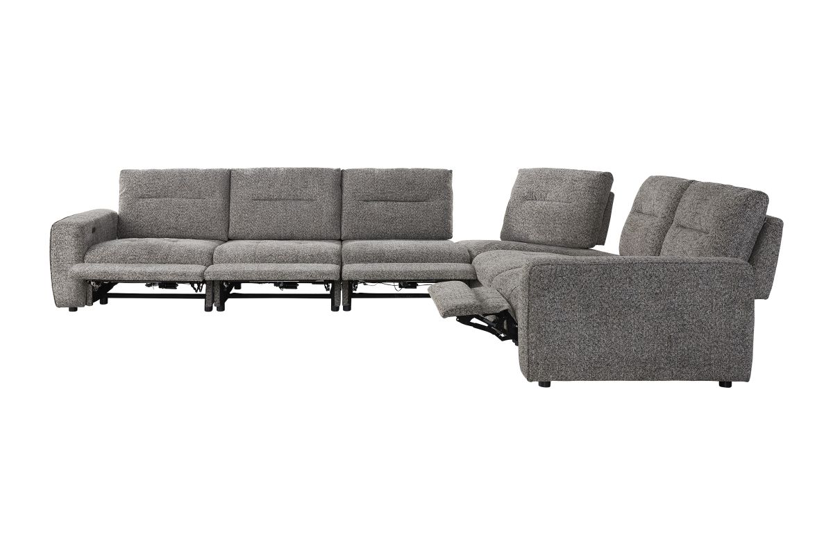 Experience modern comfort at its best with the Polo Power Reclining 6-Piece Sectional — a spacious, contemporary design built for everyday lounging, movie nights, and effortless relaxation. Wrapped in a soft, heathered performance fabric, Polo combines clean lines with generous cushioning for a look that feels both stylish and inviting.