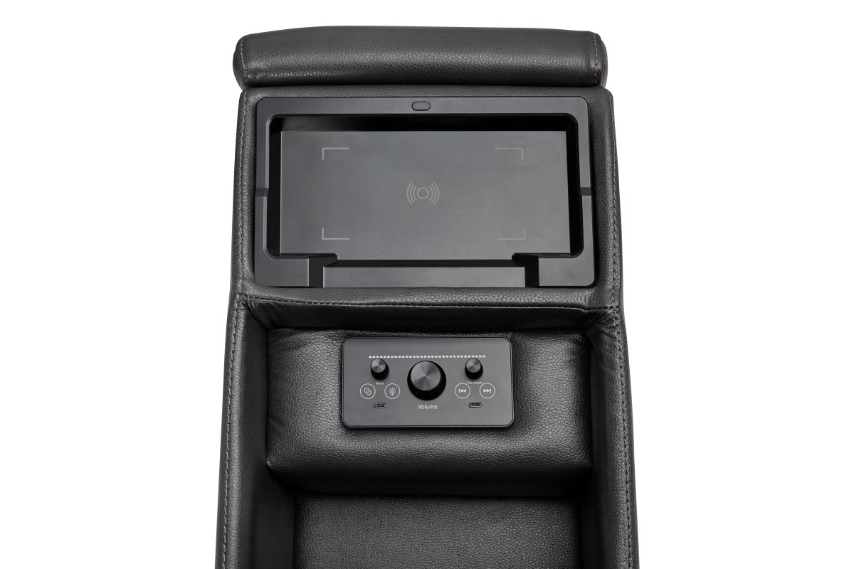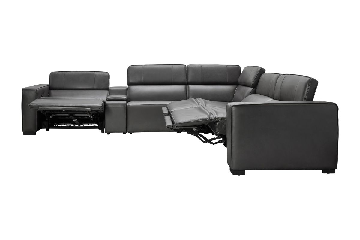 For a truly immersive experience, the Drift sectional is equipped with a built-in 3D sound system that delivers rich, theater-like audio right from your seat. The addition of vibration functions enhances relaxation, while a wireless charging station ensures your devices stay powered without the clutter of cords. With plush cushioning, modular design, and modern detailing, the Drift Grey Leather Dual Power Reclining 6-Piece Sectional is more than just seating — it’s a complete comfort and entertainment hub designed for today’s lifestyle.