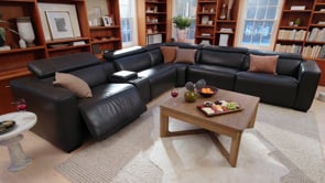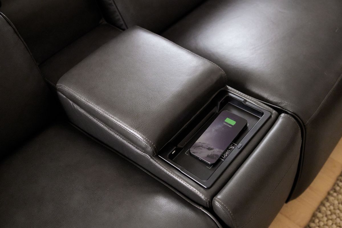For a truly immersive experience, the Drift sectional is equipped with a built-in 3D sound system that delivers rich, theater-like audio right from your seat. The addition of vibration functions enhances relaxation, while a wireless charging station ensures your devices stay powered without the clutter of cords. With plush cushioning, modular design, and modern detailing, the Drift Grey Leather Dual Power Reclining 7-Piece Sectional is more than just seating — it’s a complete comfort and entertainment hub designed for today’s lifestyle.