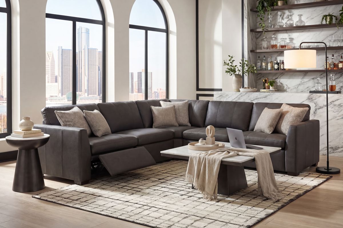 Experience the perfect balance of sophistication and comfort with the Lance Collection. Wrapped in a soft, matte-finished charcoal top-grain leather, this deep-seating power reclining sectional offers both luxury and everyday livability. The generously padded cushions provide exceptional comfort, while the removable seat cushions make it easy to maintain that just-fluffed look.