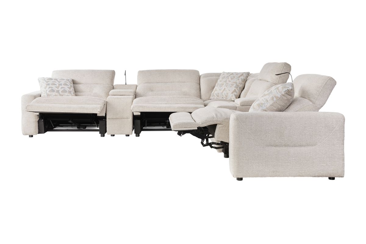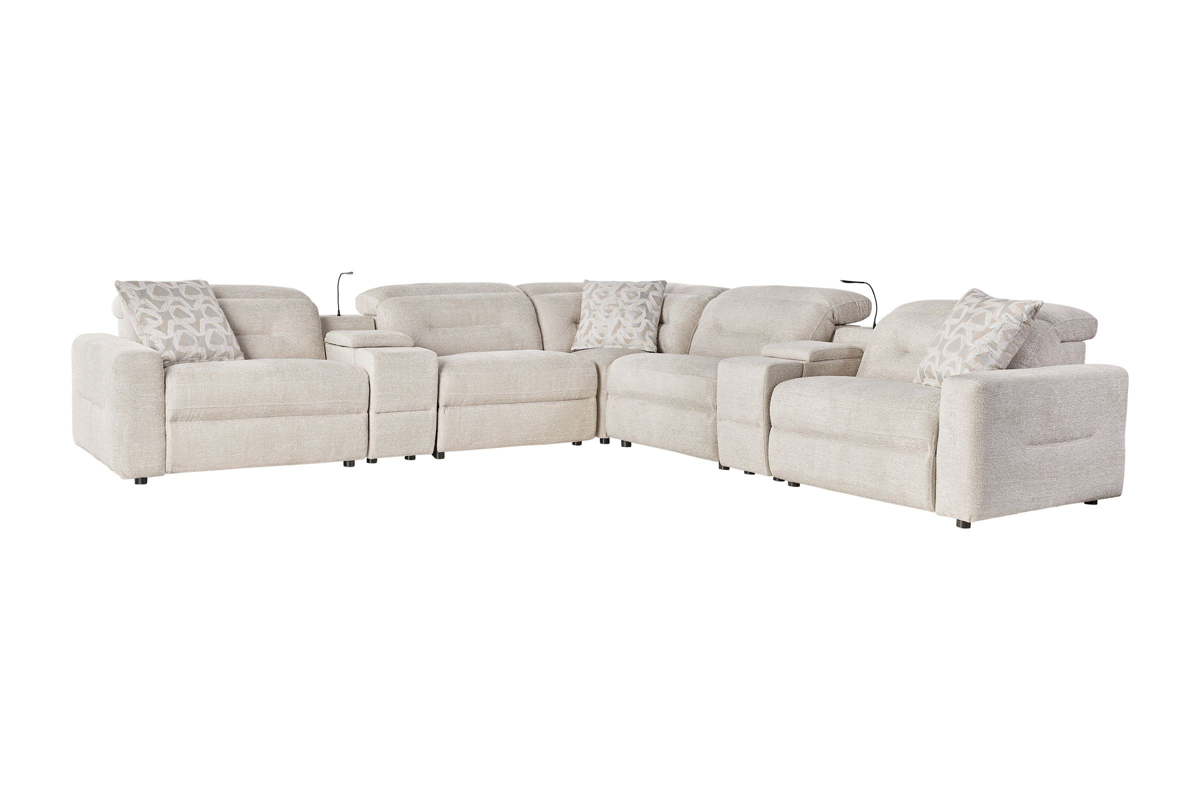 The Marin Dual Power Reclining 7-Piece Console Sectional captures the essence of contemporary casual living — where modern form meets plush, laid-back comfort. Designed with soft curves and a clean silhouette, it brings a sense of effortless sophistication to any living space. The textured neutral upholstery adds warmth and versatility, complementing everything from minimalist modern to transitional interiors.