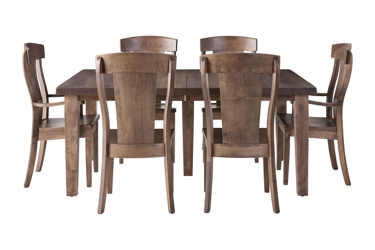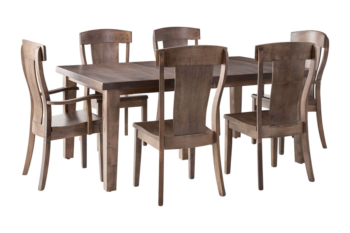 Furnish your dining room with the streamlined and expertly Eastchester crafted table and chair set. Each piece is constructed from robust solid wood using time-honored techniques to ensure heirloom quality. The table features a sleek and simple frame, while the surrounding side and arm chairs boast unique wavy paneled seat backs and slightly rounded tops for comfort and style. Furthermore, each piece is available in numerous wood types and finishes so you can create the look that suits you best.