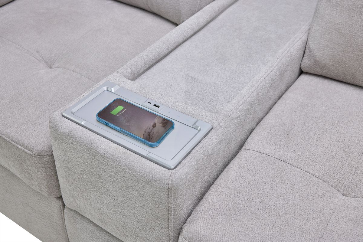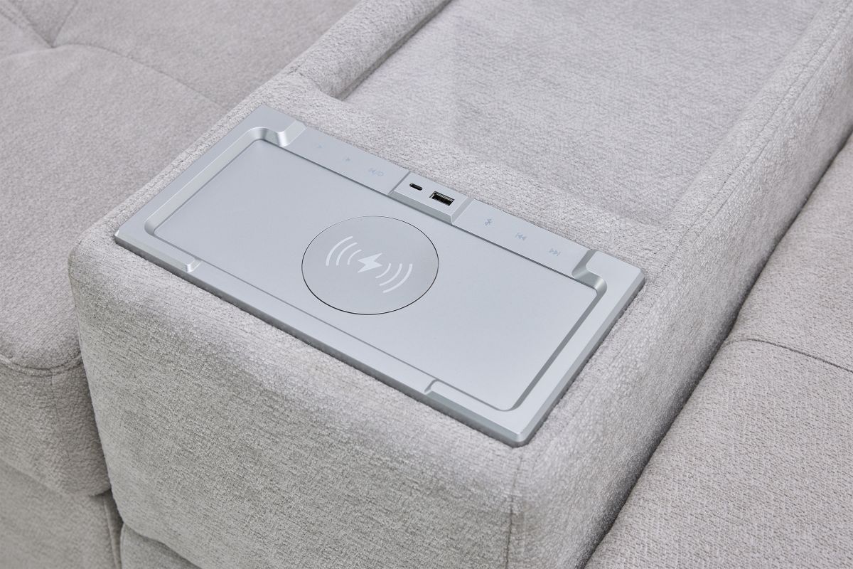 The standout feature is the media storage console, equipped with convenient storage, a built-in Bluetooth speaker, wireless charging pad, and USB port—keeping your devices powered and your entertainment within easy reach. Whether you’re enjoying a cozy movie night or hosting friends, the Rio sectional blends contemporary elegance, smart functionality, and unmatched comfort to create the ultimate gathering spot in your home.
