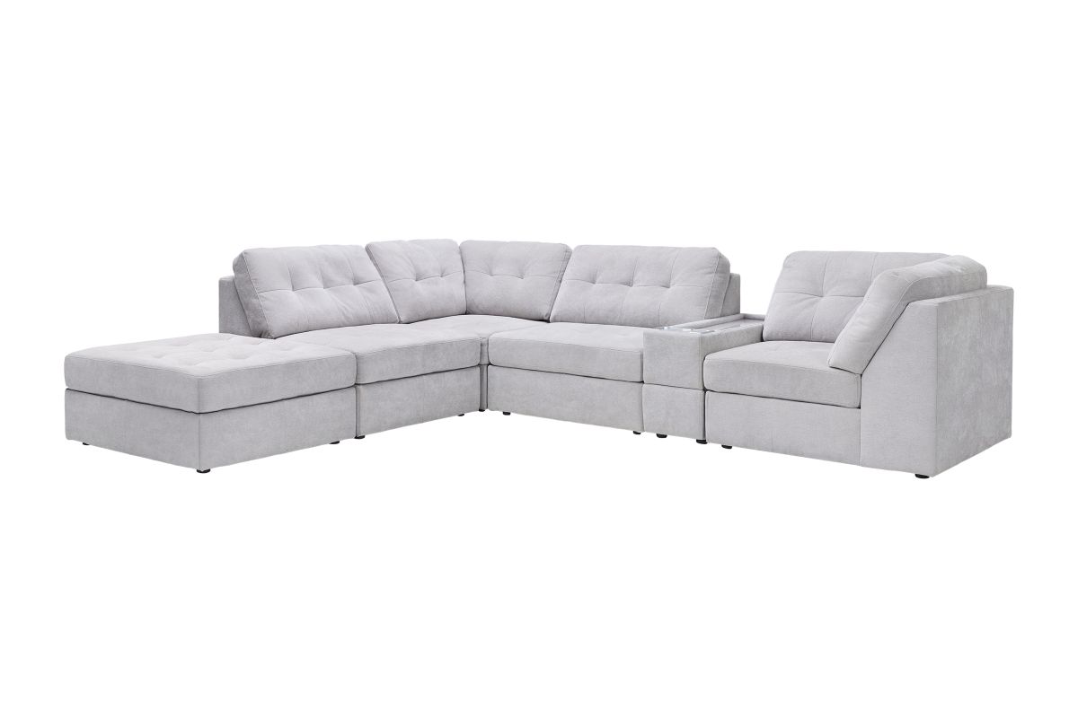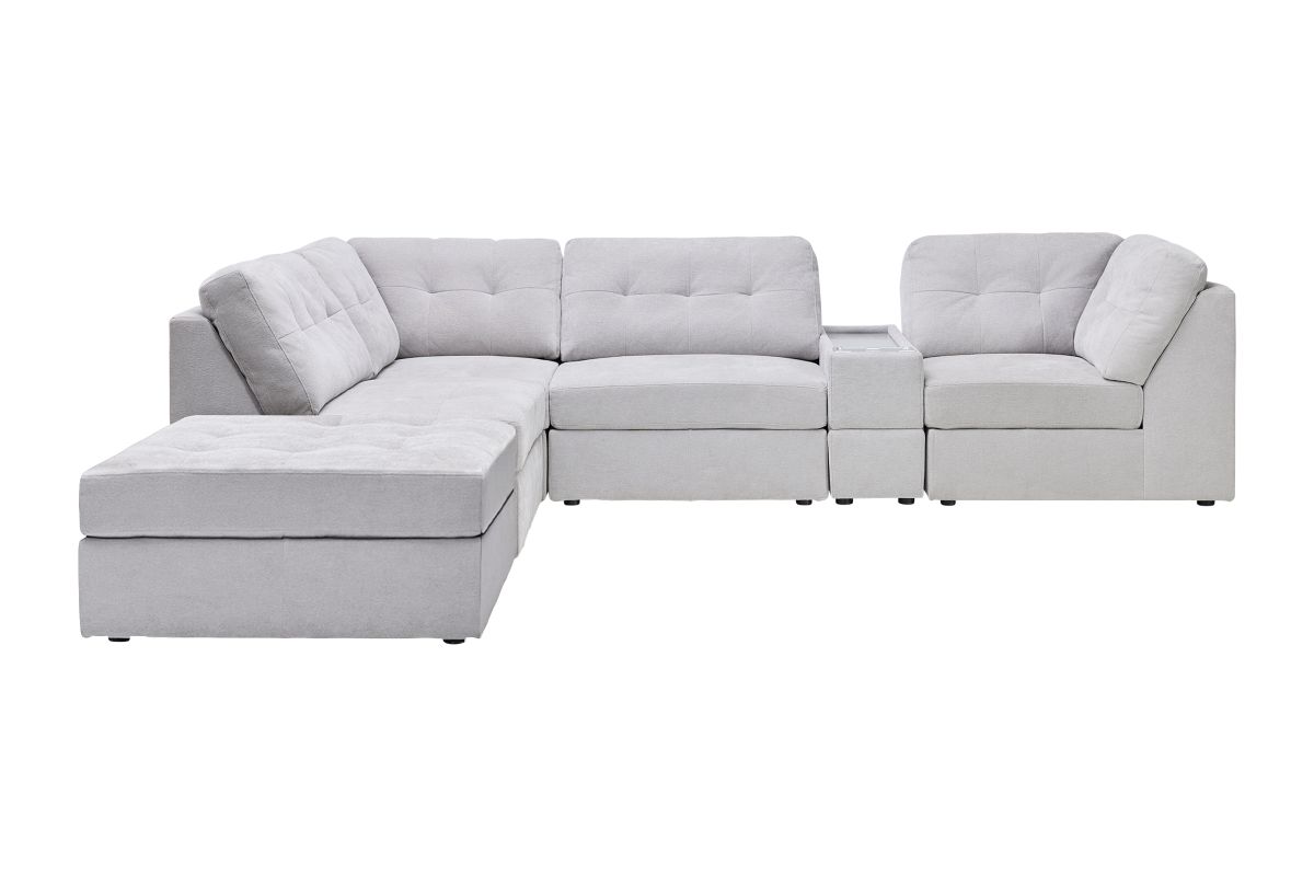 Discover the Rio Grey Sectional Collection, where modern style meets everyday comfort and technology. This modular 6-piece sectional with ottoman is designed for versatility, allowing you to configure the perfect seating arrangement for your space and lifestyle. Wrapped in rich grey upholstery, it offers deep seating, plush cushions, and wide armrests for a luxurious lounging experience.