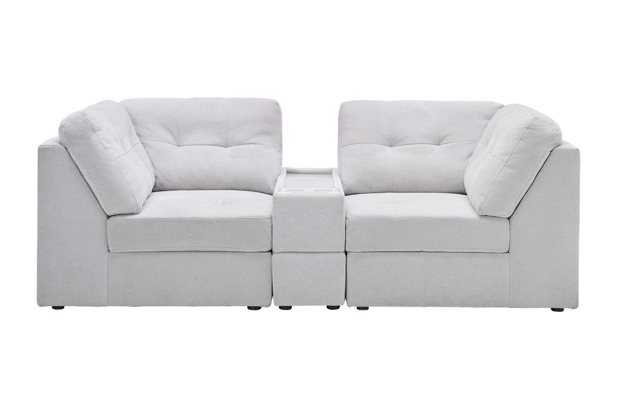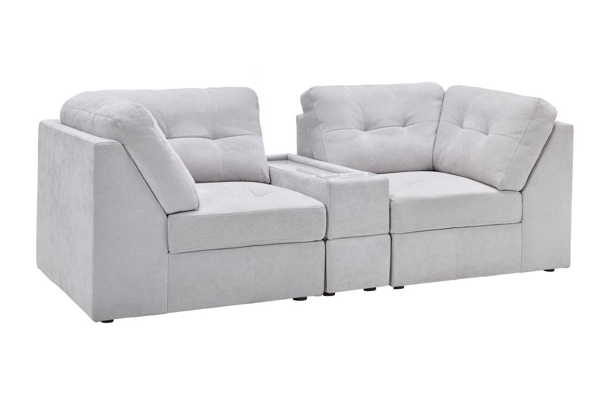 Discover the Rio Grey Console Loveseat, where modern style meets everyday comfort and technology. This console loveseat is designed for versatility, allowing you to configure the perfect seating arrangement for your space and lifestyle. Wrapped in rich grey upholstery, it offers deep seating, plush cushions, and wide armrests for a luxurious lounging experience.