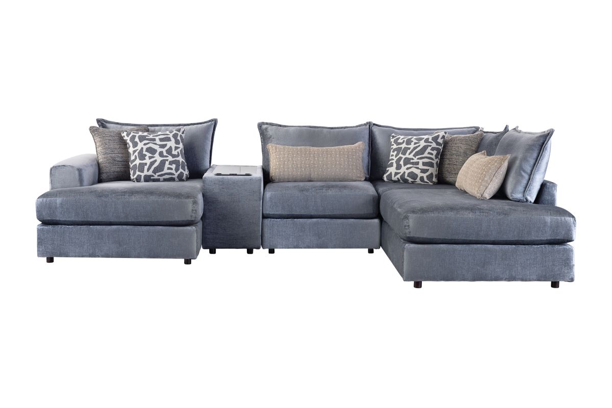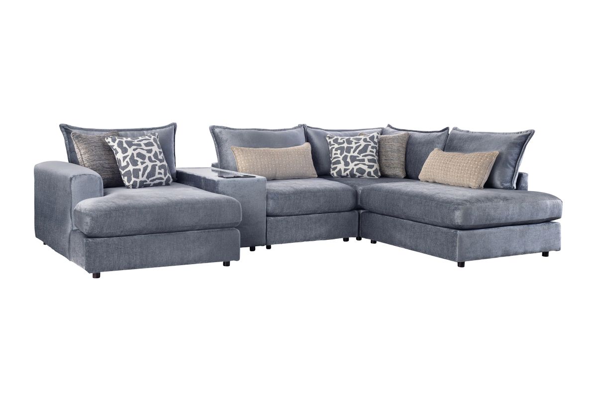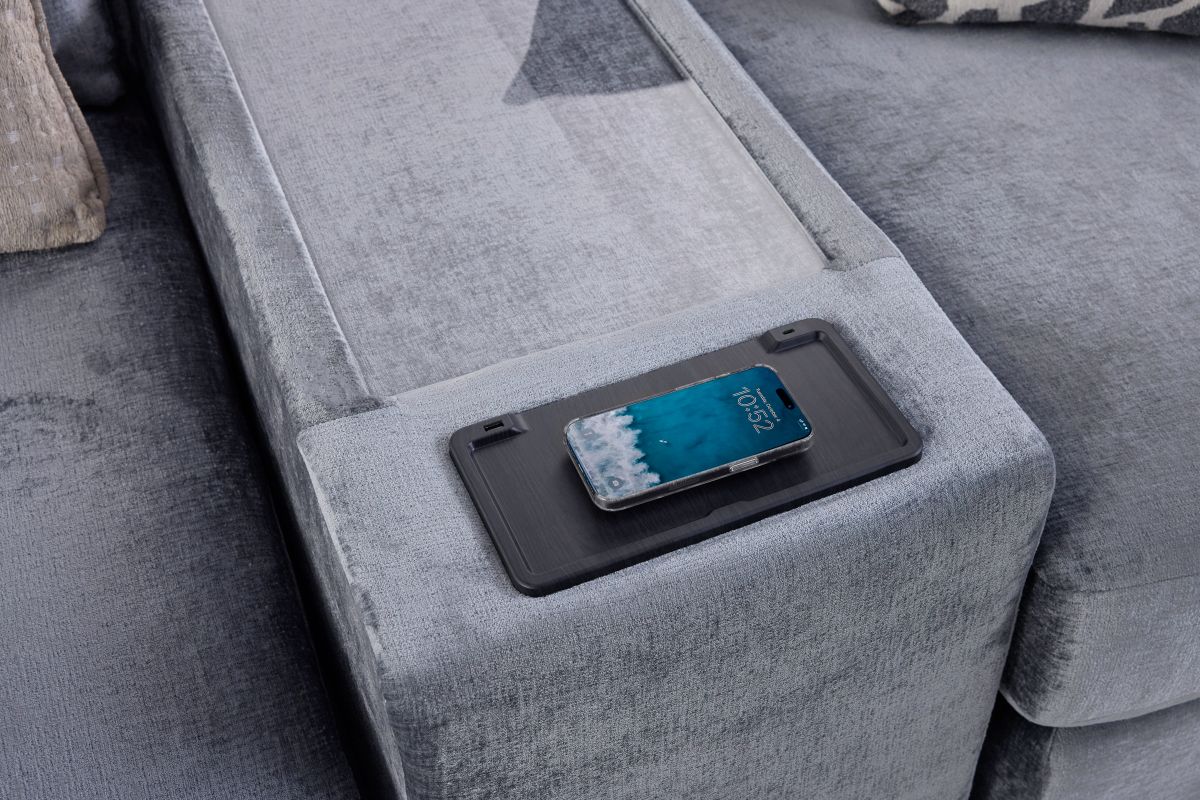 Upgrade your living space with the perfect balance of comfort, style, and technology in the DreamTwo Steel 5-Piece Sectional with Left Arm Facing Chaise. Featuring a right arm facing bump chaise, this sectional gives you extra room to stretch out and relax while still keeping a sleek, modern profile. The built-in console keeps convenience at your fingertips with wireless charging, USB ports, and a Bluetooth speaker, making it easy to power up your devices, stream music, or enjoy movie nights without interruptions.