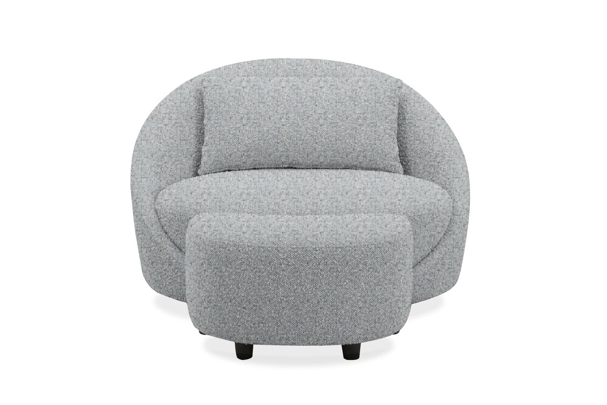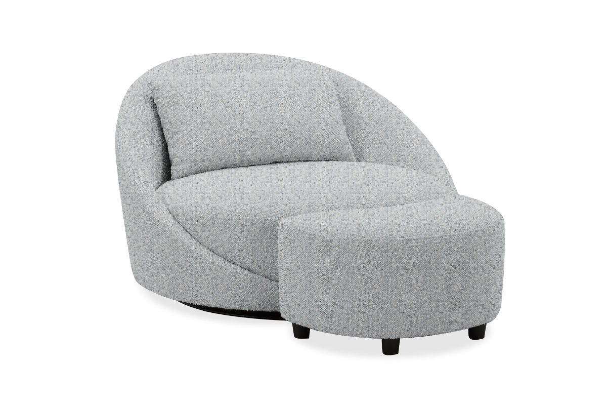 The Beck Swivel Chair and Ottoman bring refined comfort and modern versatility to any living space. Upholstered in a richly textured chenille polyester fabric, Beck stands out with its distinctive woven design and soft, subtle sheen that adds visual depth and dimension. The tactile fabric invites touch while maintaining durability for everyday living.