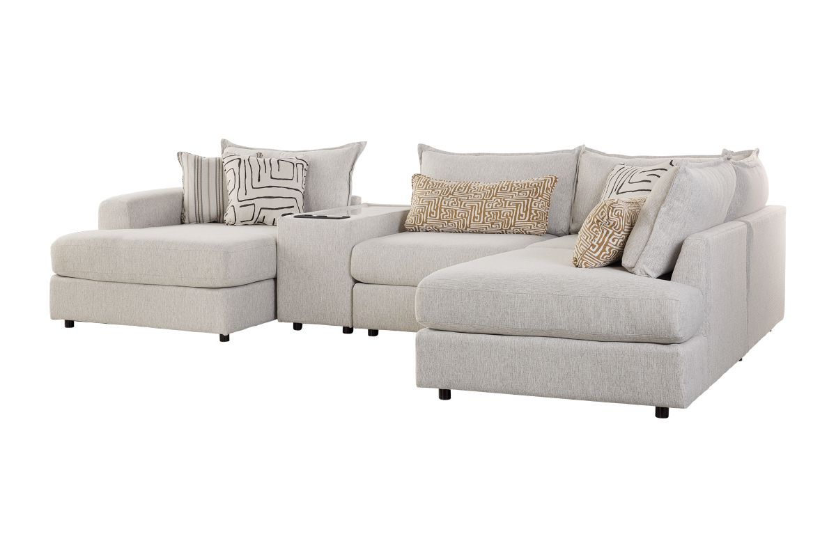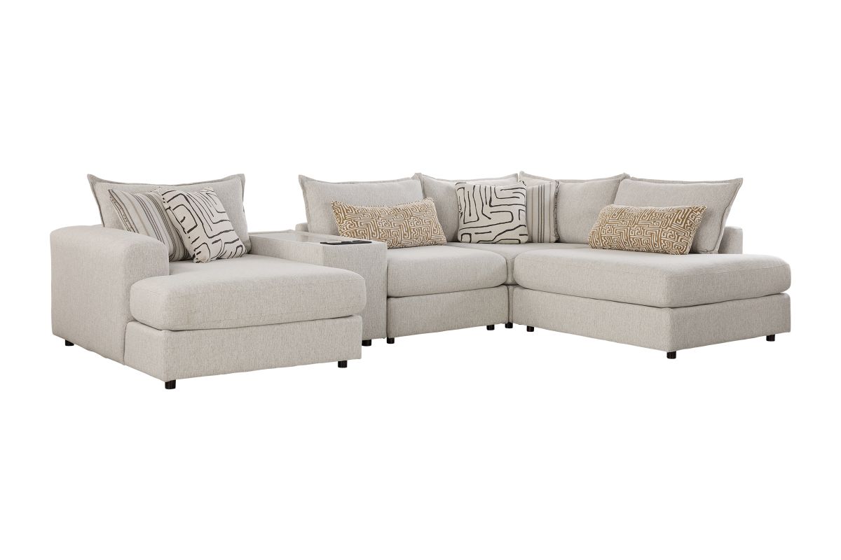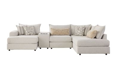 Upgrade your living space with the perfect balance of comfort, style, and technology in the Dream 5-Piece Sectional. Also featuring a right arm facing bump chaise, this sectional gives you extra room to stretch out and relax while still keeping a sleek, modern profile. The built-in console keeps convenience at your fingertips with wireless charging, USB ports, and a Bluetooth speaker, making it easy to power up your devices, stream music, or enjoy movie nights without interruptions.