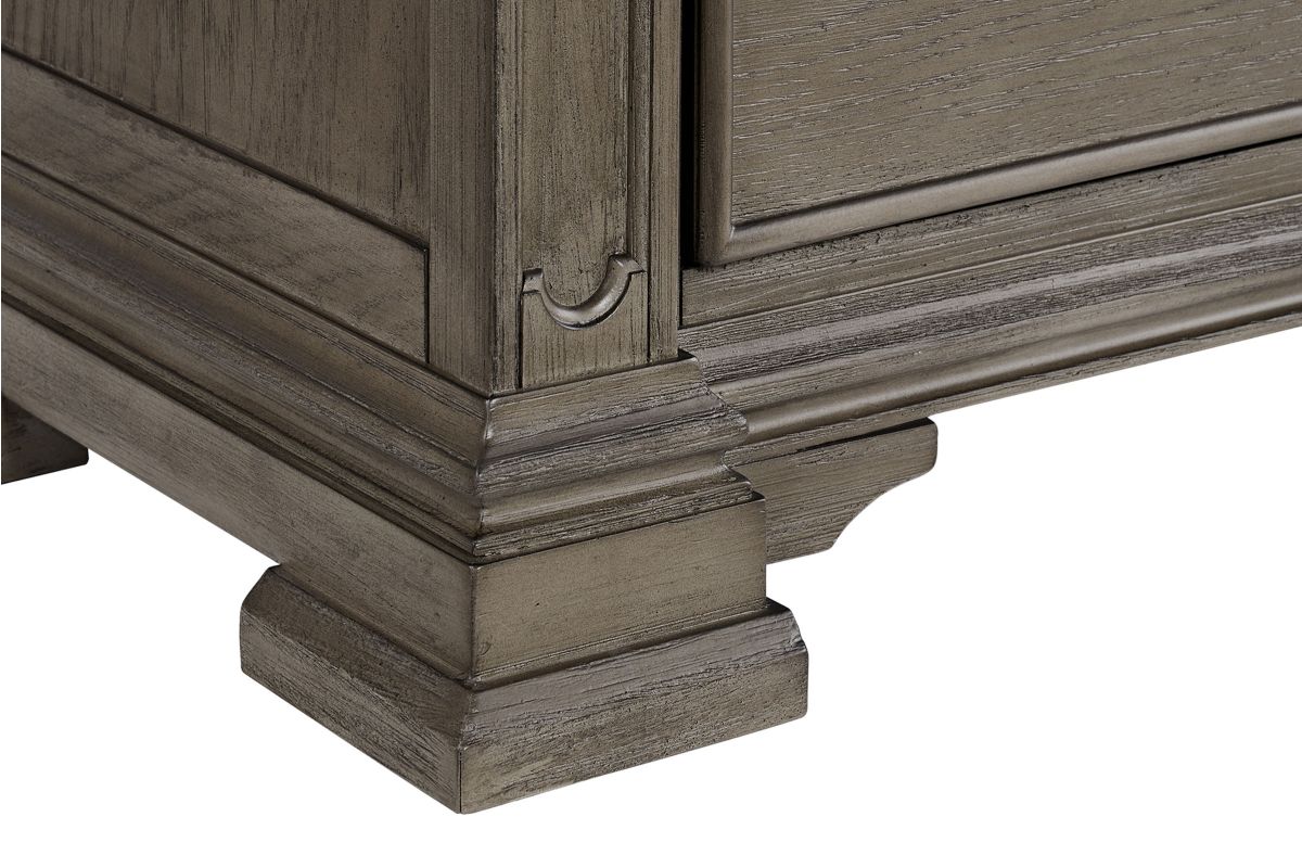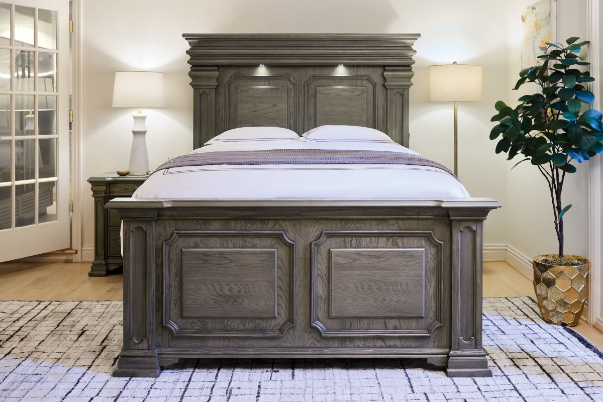 Transform your bedroom into a sophisticated sanctuary with the Radcliff Queen Panel Bedroom Set. This set features refined molding, giving it an elegant and timeless look. The high headboard adds a touch of grandeur to your space, while the touch-button mood-lighting in the headboard creates a relaxing ambiance. With two USB ports conveniently located in the headboard, you can easily charge your devices while lounging in bed. The black felt lined top drawers of all the case pieces provide a luxurious touch, and the nightstand sliding top with hidden storage offers safe keeping of your valuables. Finished with cedar veneer bottom drawers, this set combines style and durability for long-lasting use.