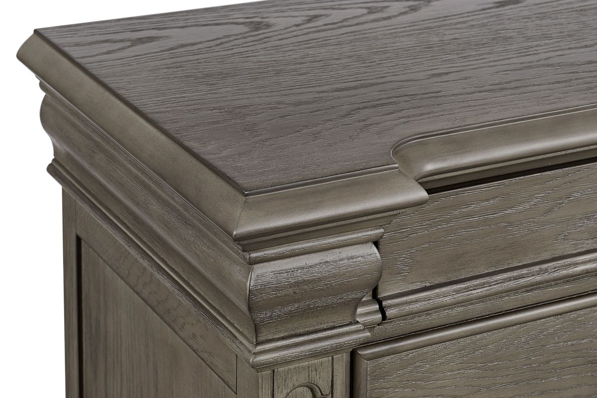 Transform your bedroom into a sophisticated sanctuary with the Radcliff Queen Storage Bedroom Set. This set features refined molding, giving it an elegant and timeless look. The high headboard adds a touch of grandeur to your space, while the touch-button mood-lighting in the headboard creates a relaxing ambiance. With two USB ports conveniently located in the headboard, you can easily charge your devices while lounging in bed. The black felt lined top drawers of all the case pieces provide a luxurious touch, and the nightstand sliding top with hidden storage offers safe keeping of your valuables. Finished with cedar veneer bottom drawers, this set combines style and durability for long-lasting use.