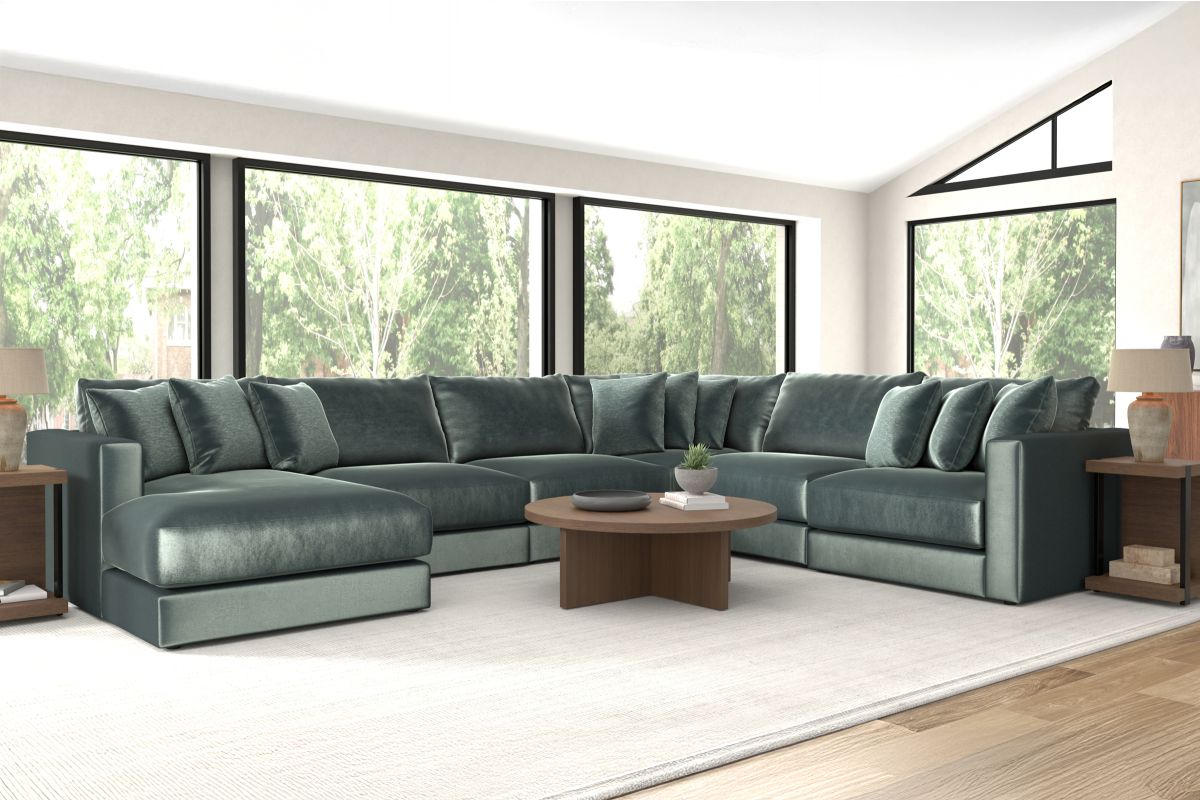 Upholstered in a rich pine green fabric, Brynn adds a warm, organic touch that feels elevated yet easy to live with. The stationary design keeps its shape and structure beautifully, making it perfect for both lounging and hosting.