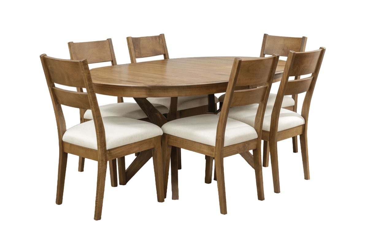 Made in Michigan & Crafted from solid hard-maple, the Paramour Dining set blends timeless elegance with lasting durability. The generously proportioned oval top creates smooth traffic flow and allows for comfortable seating at all sides. Below, the trestle-style base offers maximum legroom and stability—no intrusive corner legs, and plenty of seating flexibility.