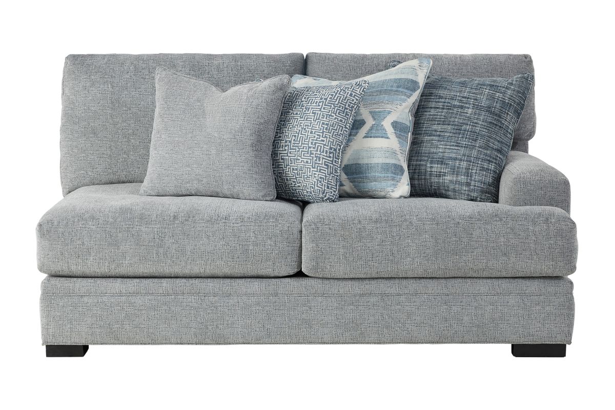 The Bulova Seating Collection is the perfect large-scale centerpiece for your living space, blending contemporary appeal with deep seated comfort. The classic style of the track arm paired with the colorful toss pillows offers a stylish yet sophisticated detailing. Proudly crafted in the USA, this oversized seating collection comfortably sits the whole family. The neutral tones of the fabric allow for this collection to blend with a variety of color palates while the stylish toss pillows give the seating ensemble a pop of color. Host endless family movie nights on the stylish Bulova Silver Collection.