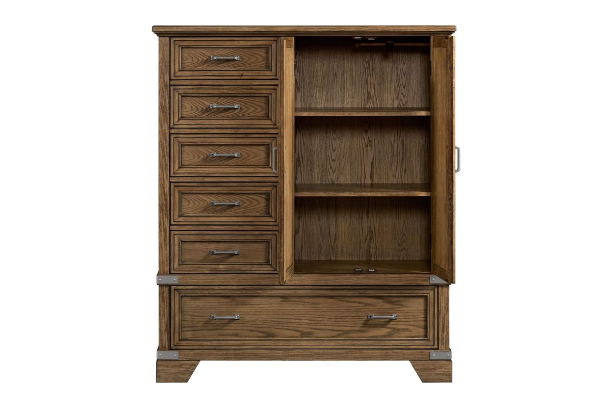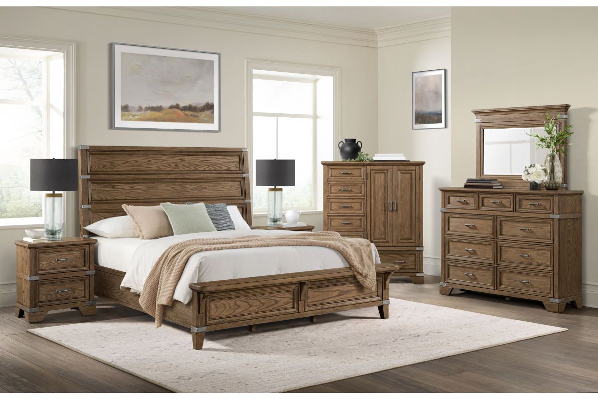 The Forge Bedroom Collection offers transitional styling with its strong metal aged iron accents and smooth Steel finish, perfectly highlighting the natural beauty of the oak grain. Quality construction, functional organization and innovated features throughout the set makes this timeless bedroom collection one you will enjoy for years to come.